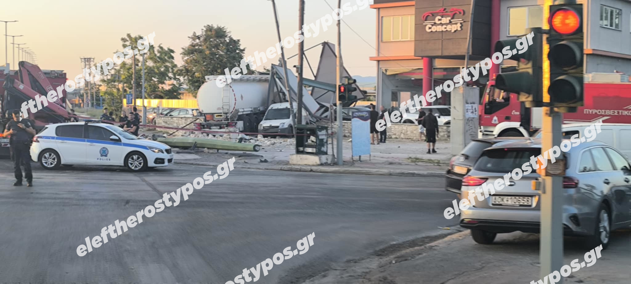 Σύμφωνα με τις πρώτες πληροφορίες, ένα φορτηγό βυτιοφόρο εξετράπη της πορείας του υπό αδιευκρίνιστες μέχρι στιγμής συνθήκες και κατέληξε πάνω σε μάντρα αυτοκινήτων που βρίσκεται στο σημείο. Οι εικόνες από το σημείο του ατυχήματος καταγράφουν τις σοβαρές ζημιές που προκλήθηκαν, τόσο στο όχημα όσο και στην επιχείρηση. Το φορτηγό έπεσε πάνω σε στέγαστρο αλλά και σε αυτοκίνητα που ήταν στο σημείο.
