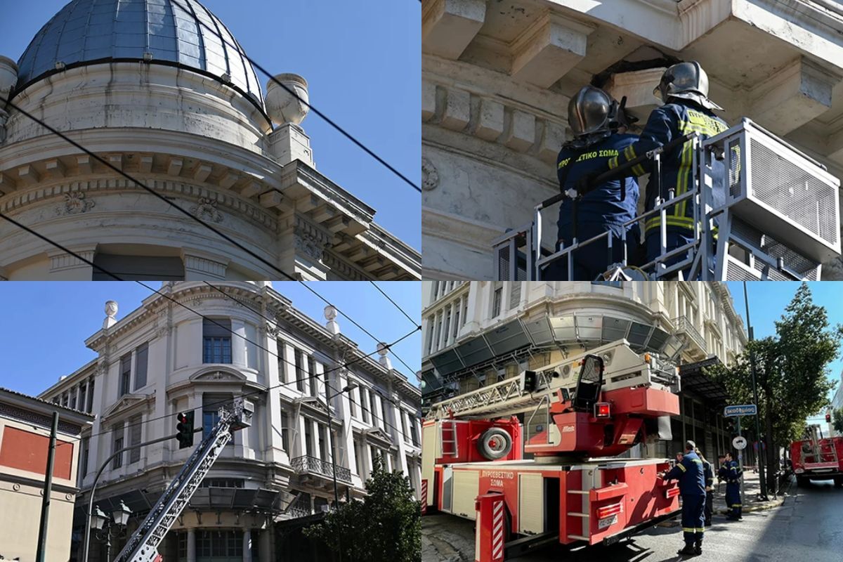 Στο σημείο έσπευσαν άμεσα πυροσβέστες με γερανοφόρο όχημα και ξεκόλλησαν το κομμάτι που κρεμόταν προκειμένου να μην υπάρξει κάποιος τραυματισμός.