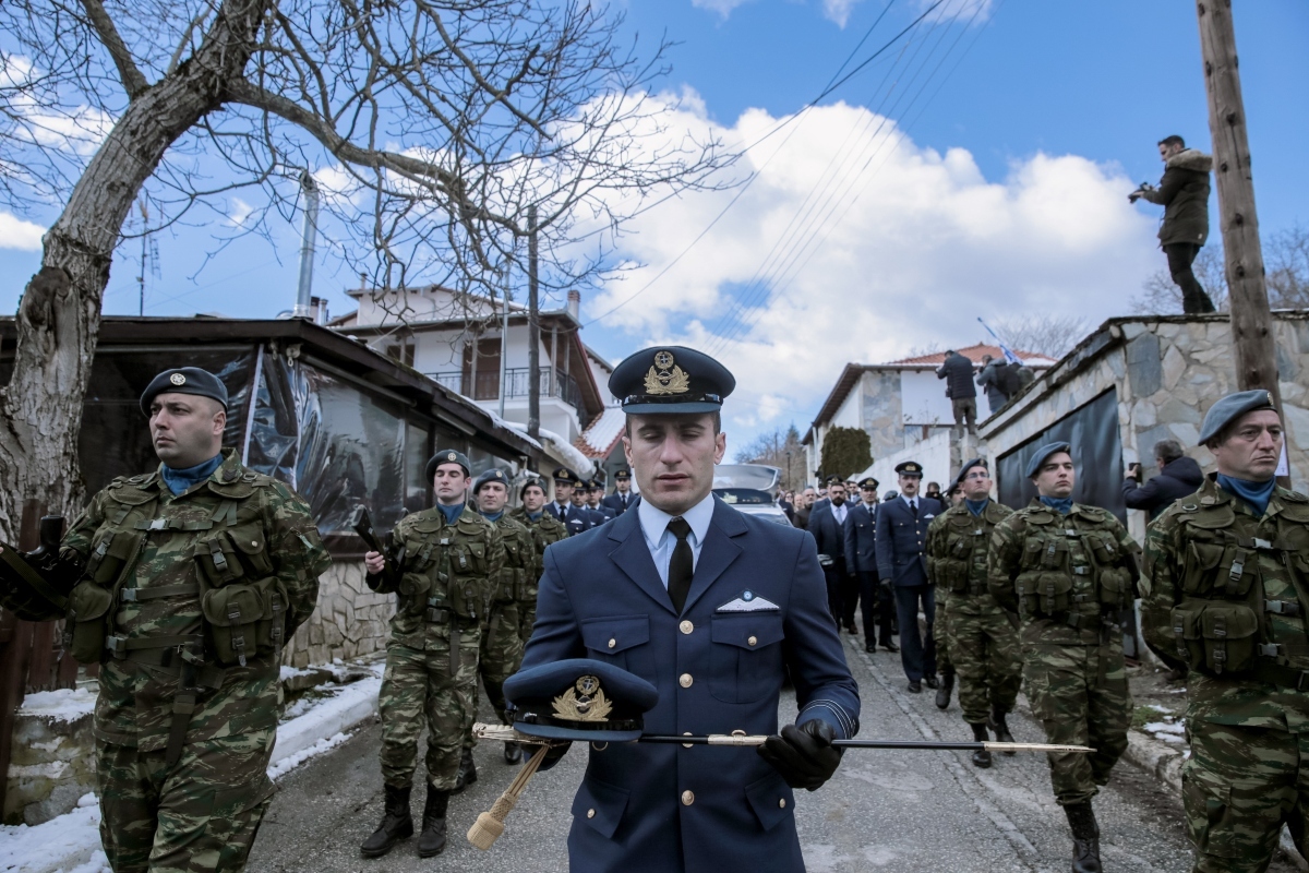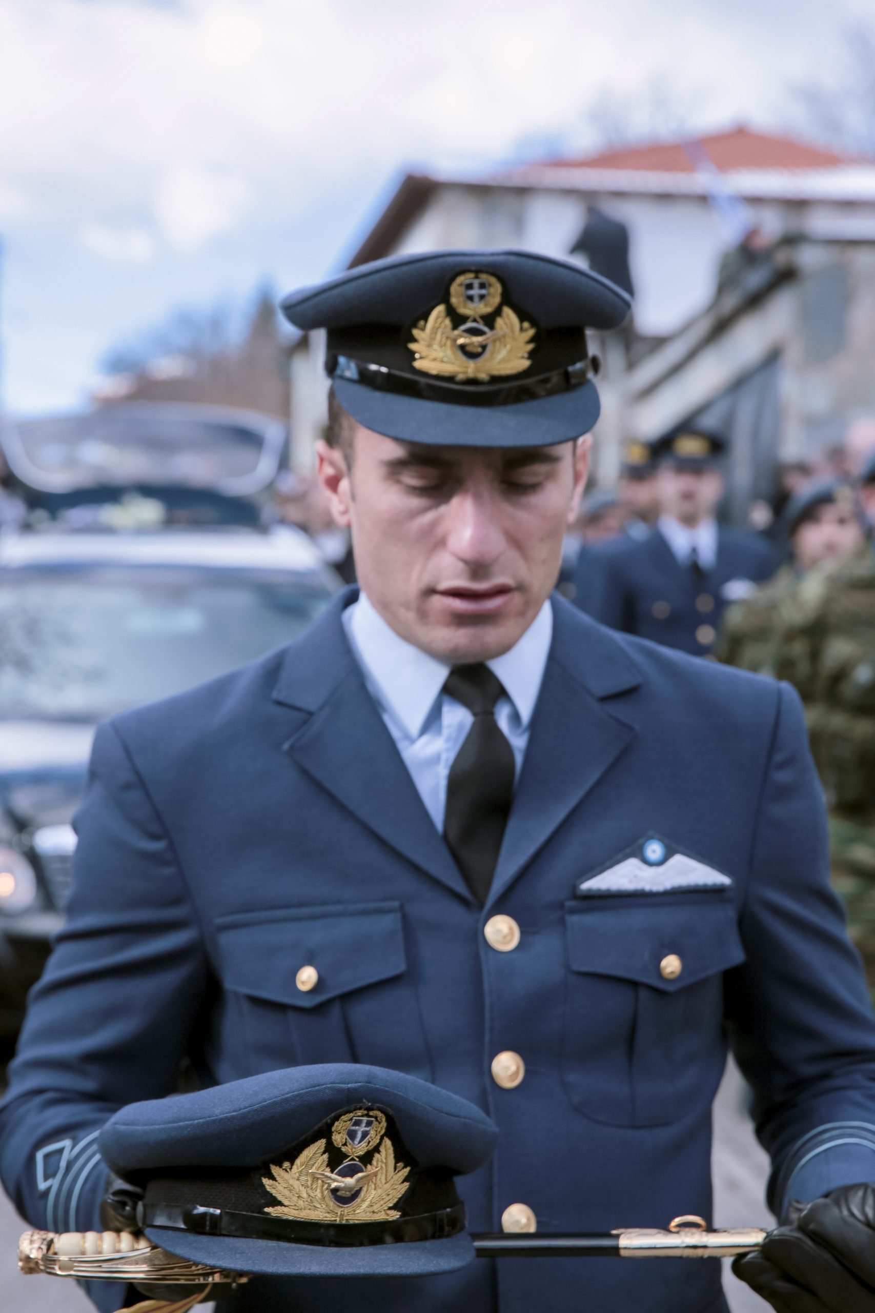 Ο φίλος του και αξιωματικός της Πολεμικής Αεροπορίας προπορευόταν του φέρετρου, ακολουθώντας τον ιερέα και συνοδεύοντας τον αγαπημένο του φίλο Στάθη στην τελευταία του κατοικία.