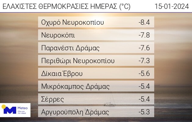Δείτε τις ελάχιστες θερμοκρασίες στον πίνακα του meteo