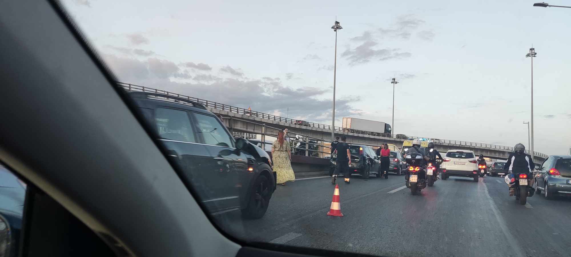 Όπως ανακοίνωσε η ελληνική αστυνομία, το τροχαίο με την εμπλοκή των τριών οχημάτων στη λεωφόρο Κηφισού σημειώθηκε στο ύψος της λεωφόρου Λεωφόρου Αθηνών στο ρεύμα προς Λαμία.