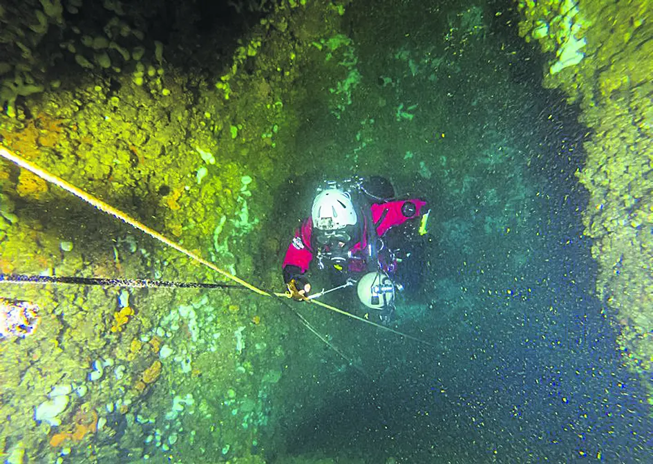 Κι αυτό επειδή η ροή του νερού λειτουργεί αντίστροφα σε σχέση με ό,τι θα περίμενε κανείς. Αντί να βοηθά την άνοδο, παρασύρει τα πάντα προς τα μέσα. Ακόμη και οι φυσαλίδες από την αναπνοή των δυτών δεν ανεβαίνουν στην επιφάνεια, αλλά κατευθύνονται προς το εσωτερικό του σπηλαίου, ένα φαινόμενο που από μόνο του αρκεί για να προκαλέσει τρόμο.