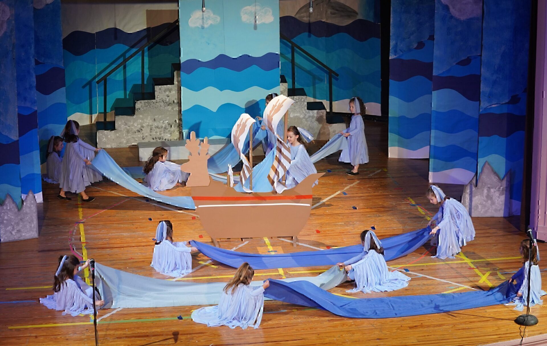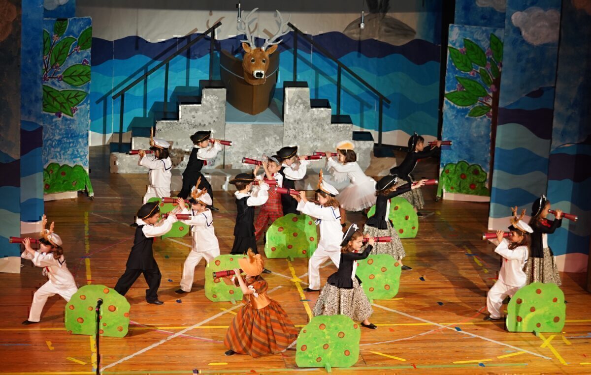 Τα προνήπια και τα νήπια τού Αρσακείου Νηπιαγωγείου Ψυχικού τα οποία παρουσίασαν την παράσταση, μεταμορφώθηκαν άλλοτε σε ζώα, όπως ελάφια, αλεπούδες, σκίουροι, λαγοί, ποντικάκια και χελώνες, άλλοτε σε ήρεμα ή μανιασμένα κύματα και άλλοτε σε πειρατές. Με υψηλής αισθητικής κοστούμια και εντυπωσιακά σκηνικά, ζωντάνεψαν το παραμύθι και μέσα από ευρηματικές και αισθαντικές χορογραφίες, αφηγήθηκαν την ιστορία του. Οι όμορφες, πρωτότυπες συνθέσεις, τραγουδισμένες από τις μαγευτικές φωνές των παιδιών, πλαισίωσαν την παράσταση.