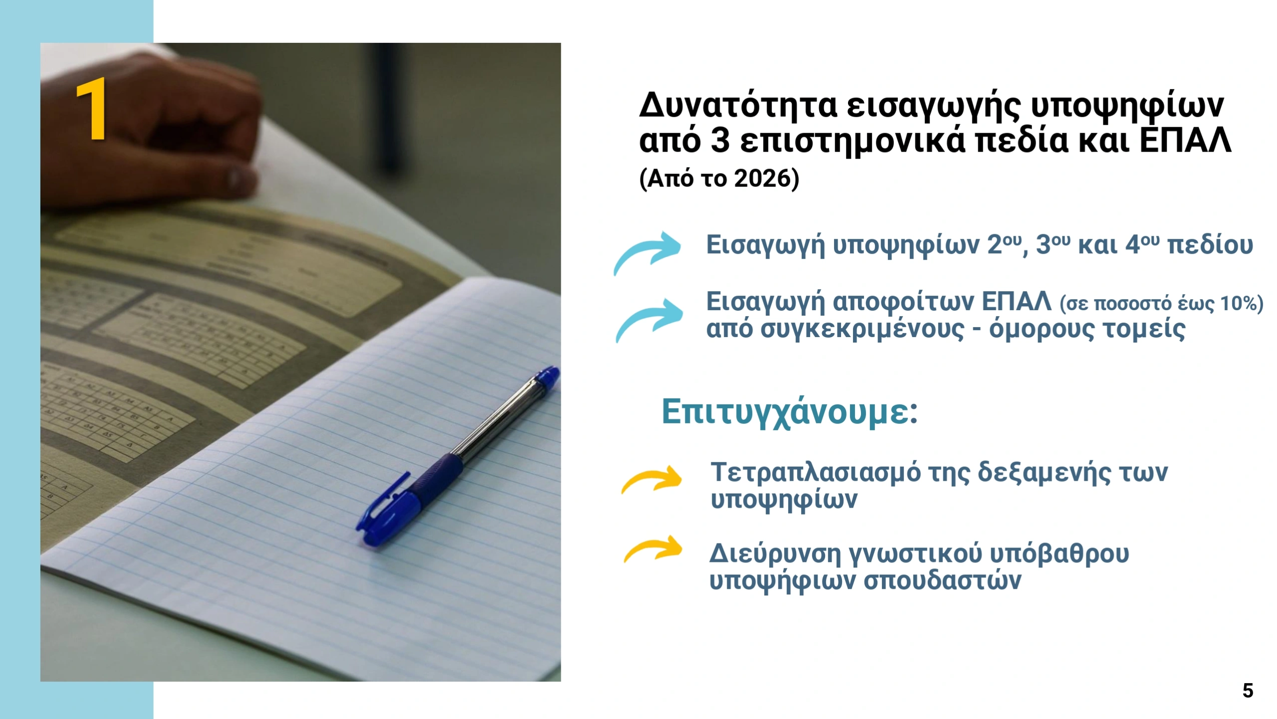 – Δυνατότητα εισαγωγής από τρία επιστημονικά πεδία και επαγγελματικά λύκεια