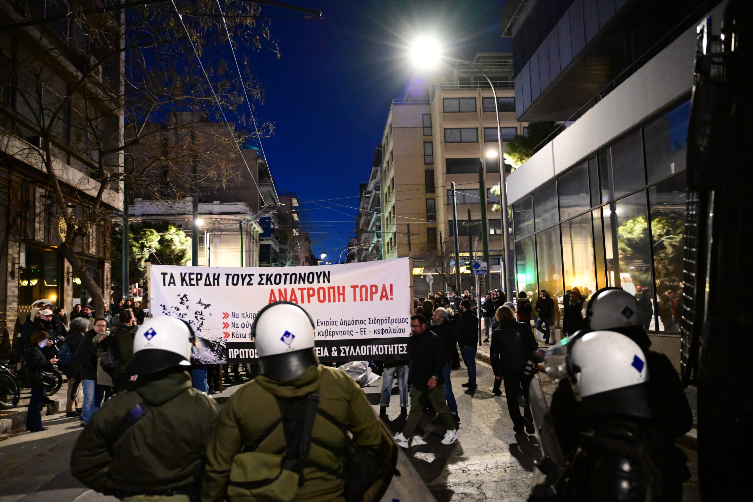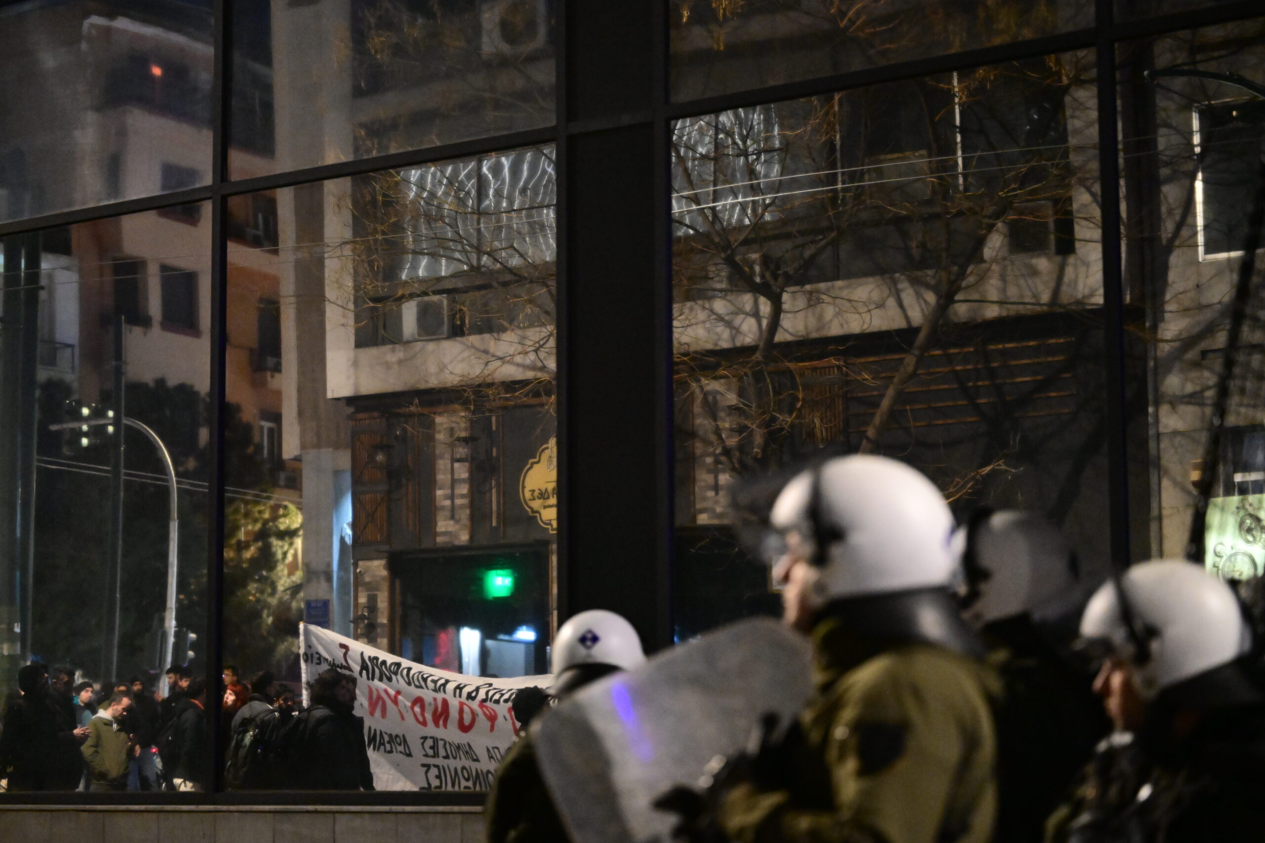 Η συγκέντρωση ξεκίνησε λίγο μετά τις επτά, με τους διαδηλωτές να μαζεύονται μπροστά στο κτίριο της οδού Πετμεζά, όπου ήταν παραταγμένες δυνάμεις των ΜΑΤ.