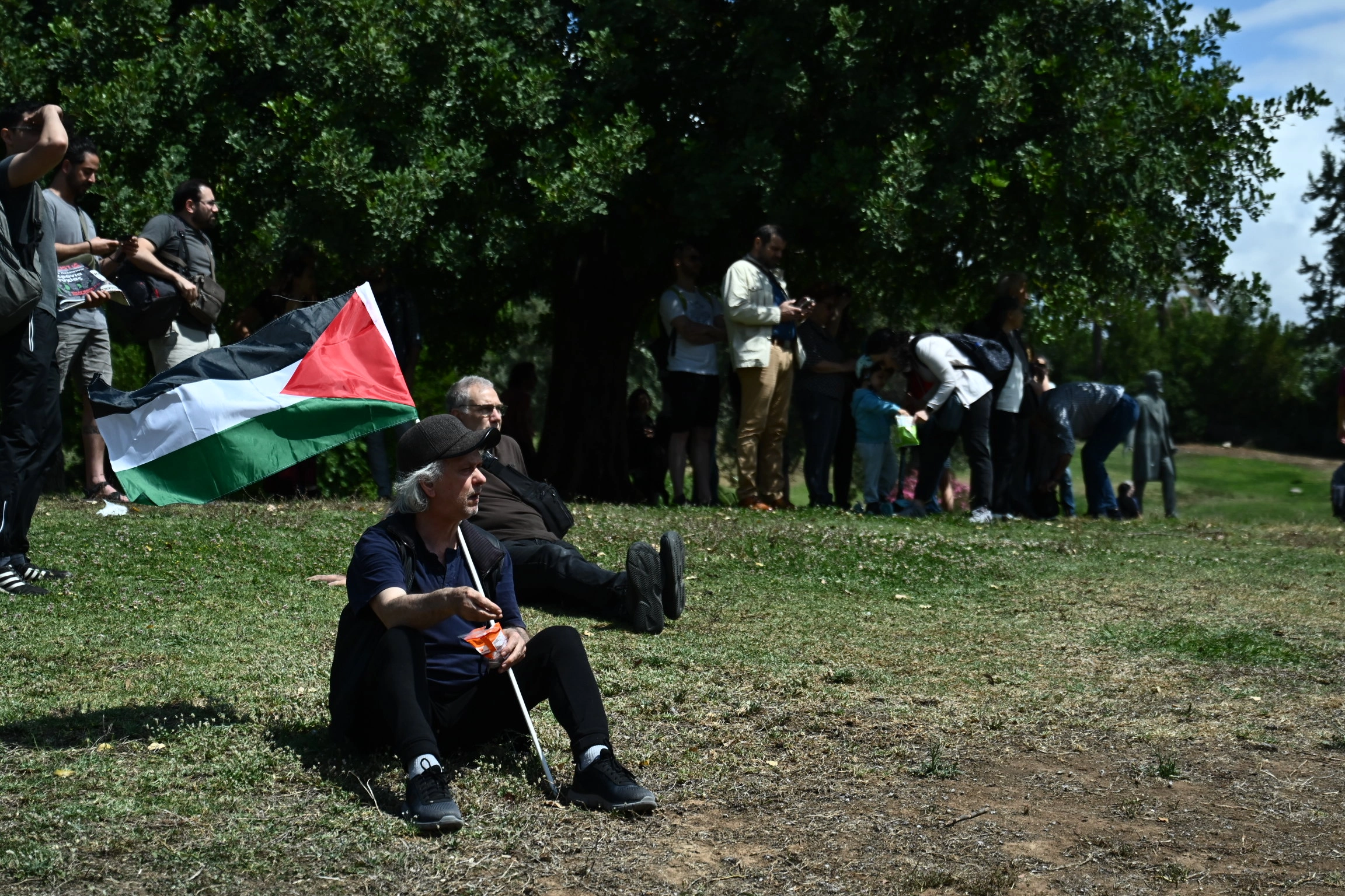 Πριν την έναρξη της πορείας ο Παλαιστίνιος μουσικός, Ναμπίλ Σαιέγ, «έντυσε» την συγκέντρωση με ήχους και τραγούδια από την πατρίδα του.