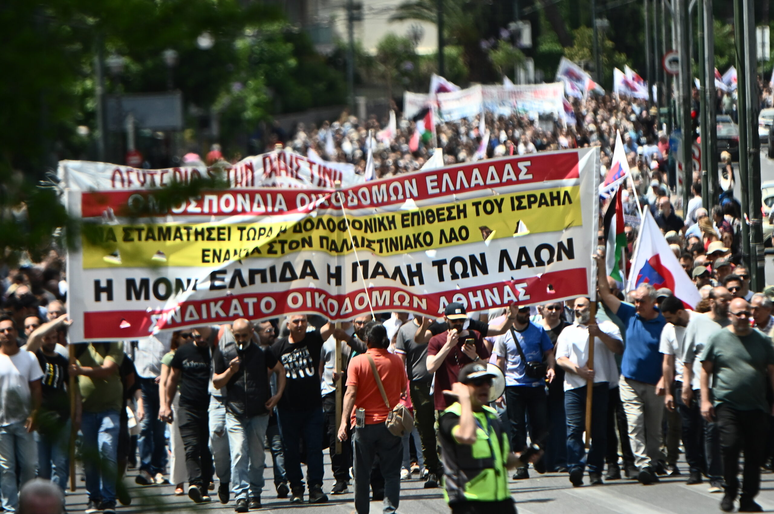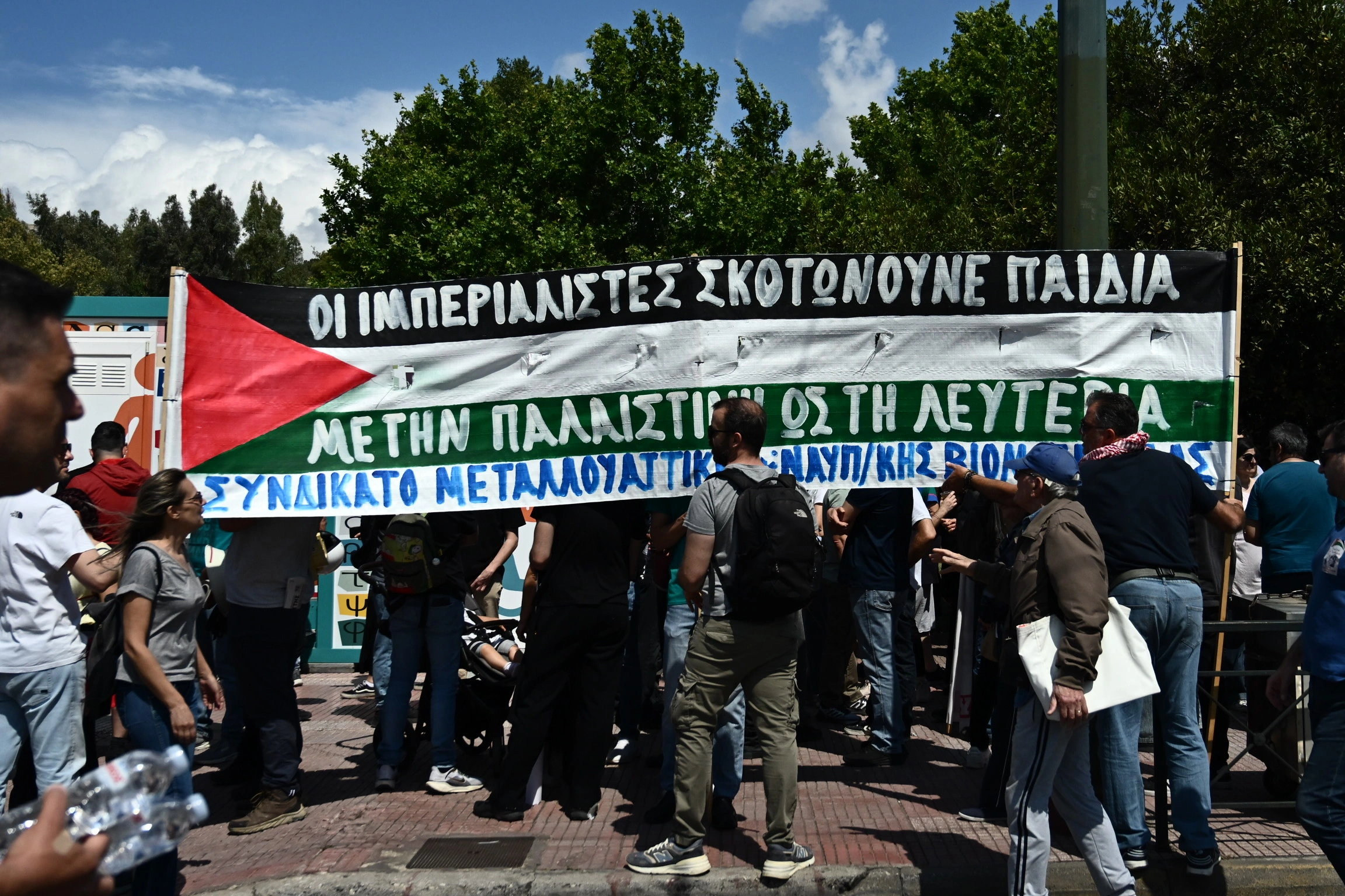 «Βία, κατοχή, γενοκτονία, το κράτος του Ισραήλ ασκεί τρομοκρατία», «Το έγκλημα αυτό έχει υπογραφή ΝΑΤΟ – Ευρωπαίοι και Ισραηλινοί», «Σύμμαχος δεν είναι το κράτος-τρομοκράτης, είναι ο λαός που γίνεται αντάρτης» είναι μερικά από τα συνθήματα που κυριάρχησαν στη συγκέντρωση και στην πορεία.