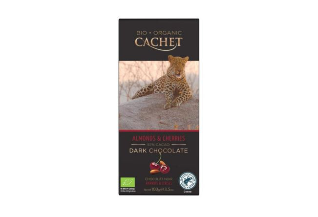 Β) «ΣΟΚΟΛΑΤΑ ΜΑΥΡΗ ΚΕΡΑΣΙ ΑΜΥΓΔΑΛΟ 57% ΚΑΚΑΟ» με εμπορική ονομασία «CACHET» σε συσκευασία των 100g, με αριθμό παρτίδας 22302 και ημερομηνία ελάχιστης διατηρησιμότητας 29/01/2024 με ενδεικτική φωτογραφία: