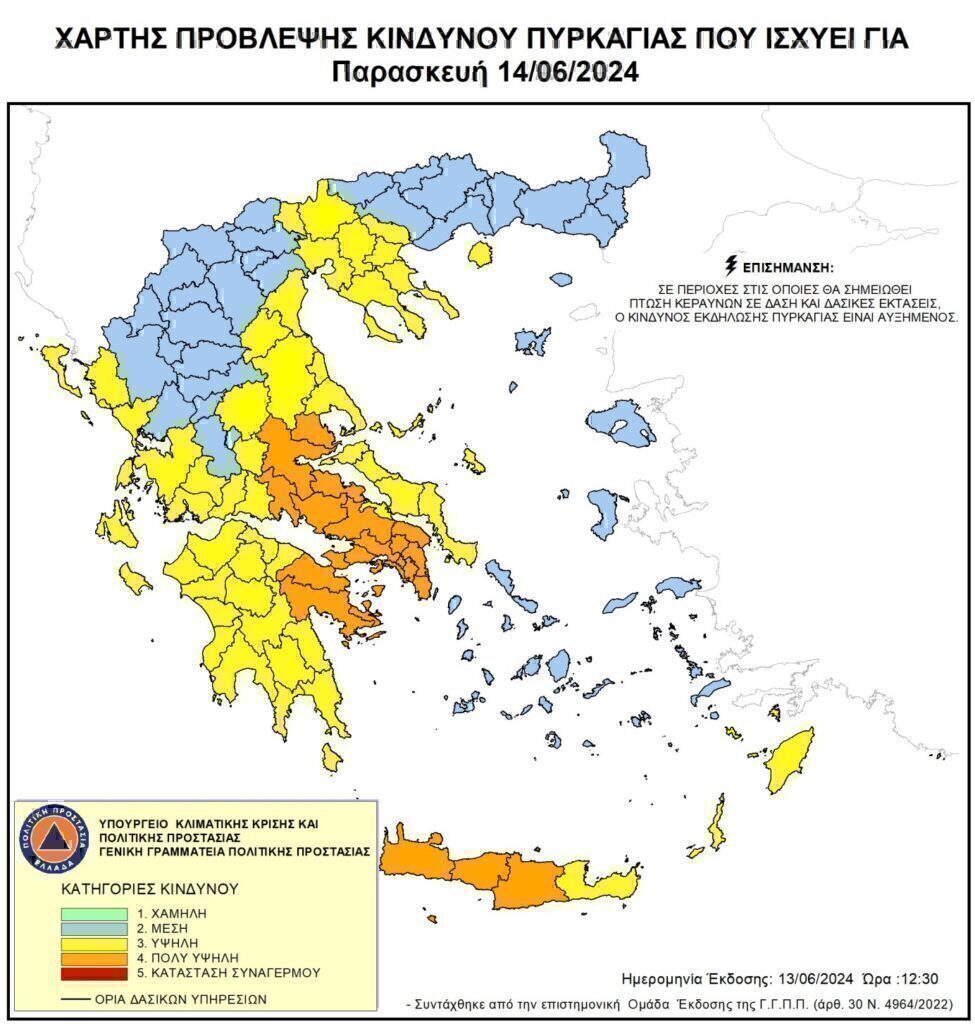 Η Γενική Γραμματεία Πολιτικής Προστασίας (civilprotection.gov.gr) του Υπουργείου Κλιματικής Κρίσης & Πολιτικής Προστασίας έχει ενημερώσει τις αρμόδιες υπηρεσιακά εμπλεκόμενες κρατικές υπηρεσίες, καθώς και τις Περιφέρειες και τους Δήμους των ανωτέρω περιοχών, ώστε να βρίσκονται σε αυξημένη ετοιμότητα πολιτικής προστασίας προκειμένου να αντιμετωπίσουν άμεσα τυχόν επεισόδια πυρκαγιών.