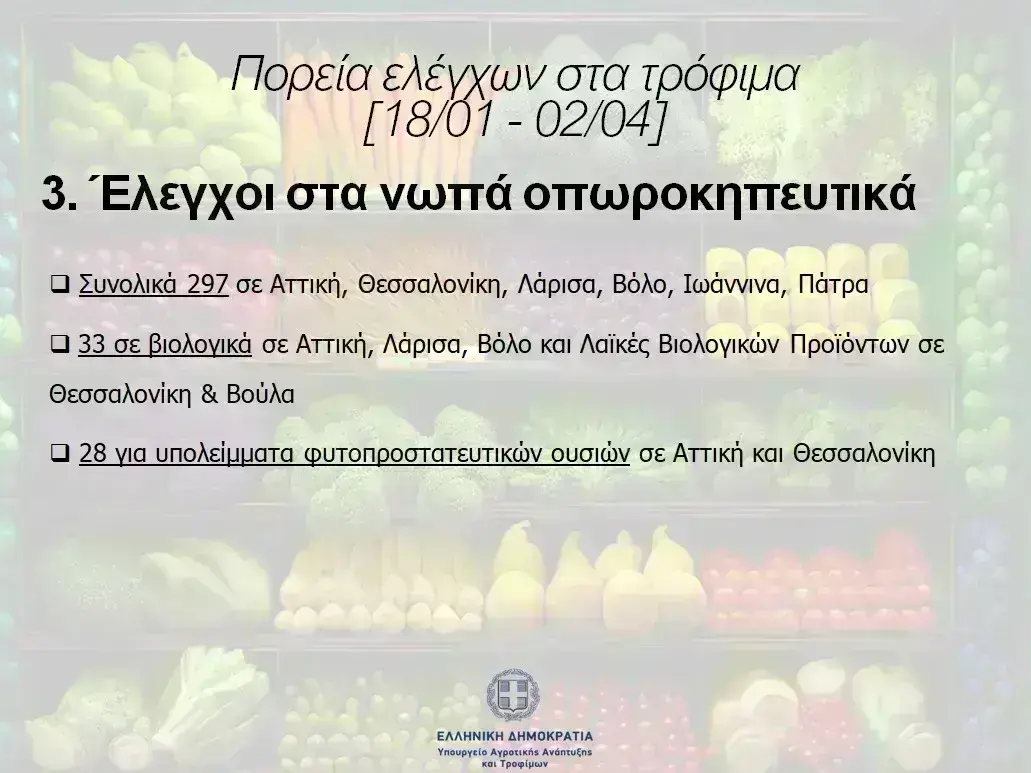Αντίστοιχοι έλεγχοι έχουν πραγματοποιηθεί και στα νωπά οπωροκηπευτικά.