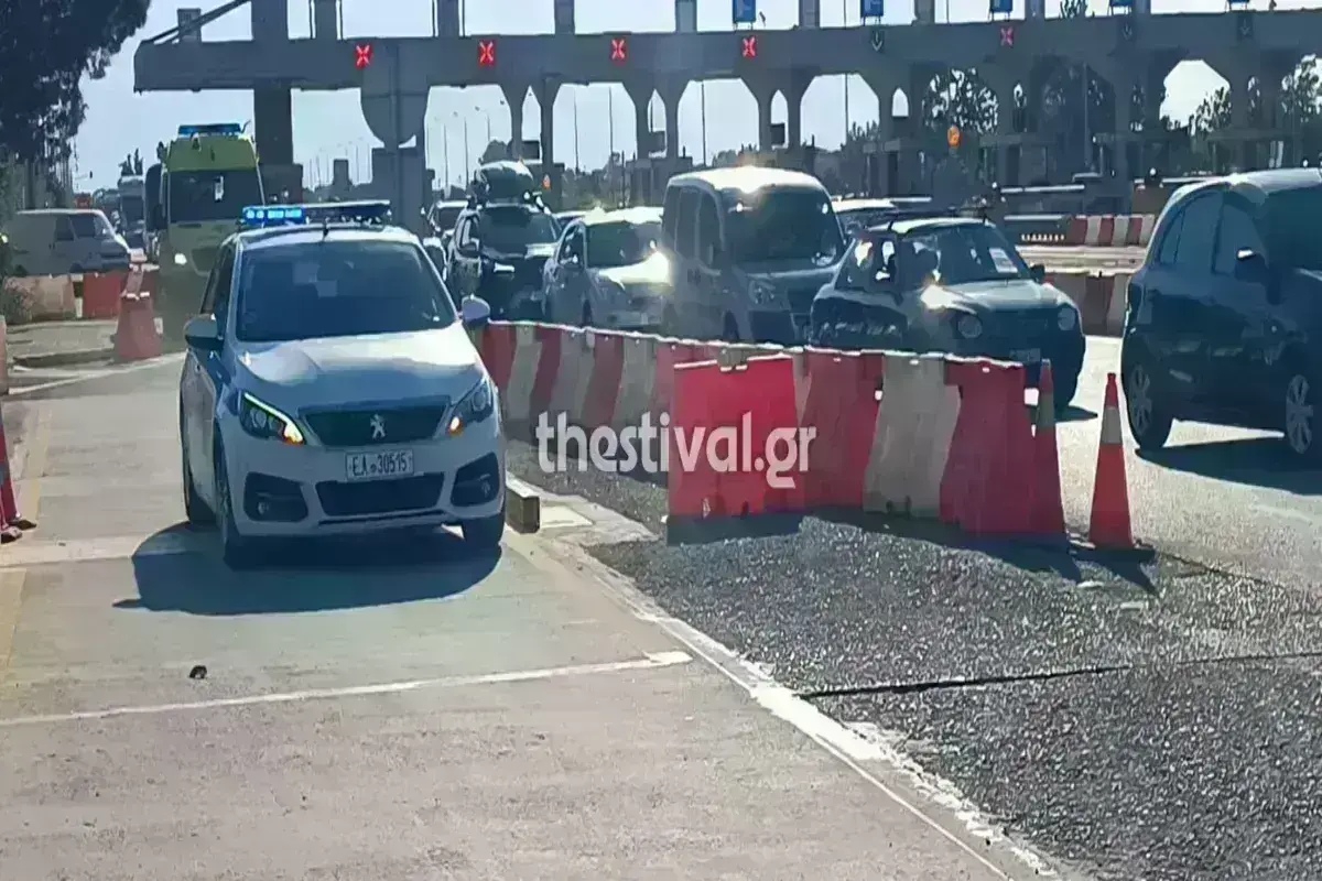Συγκεκριμένα, αρκετές εκατοντάδες μέτρα πριν τον σταθμό διοδίων της περιοχής επικρατεί μποτιλιάρισμα, αφού η διέλευση των οχημάτων, αν και χωρίς αντίτιμο, πραγματοποιείται μόνον από δύο λωρίδες κυκλοφορίας. Μάλιστα, λίγα μέτρα μετά τα διόδια καταλήγουν να γίνουν μία, ενώ η κατάσταση εκτονώνεται περίπου στο ύψος της Χαλάστρας.