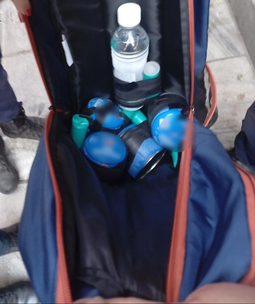 Σύμφωνα με τις πρώτες πληροφορίες, ένας 20χρονος βρέθηκε να έχει στην κατοχή του 5 εμπρηστικούς μηχανισμούς, full face και γάντια, ενώ ο 17χρονος κατείχε σφυρί έκτακτης ανάγκης λεωφορείου.