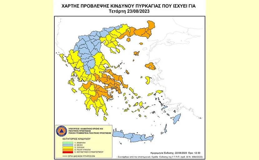 Η Γενική Γραμματεία Πολιτικής Προστασίας (civilprotection.gov.gr) του Υπουργείου Κλιματικής Κρίσης και Πολιτικής Προστασίας έχει ενημερώσει τις αρμόδιες υπηρεσιακά εμπλεκόμενες κρατικές υπηρεσίες, καθώς και τις Περιφέρειες και τους Δήμους των ανωτέρω περιοχών, ώστε να βρίσκονται σε αυξημένη ετοιμότητα πολιτικής προστασίας προκειμένου να αντιμετωπίσουν άμεσα τυχόν επεισόδια πυρκαγιών.