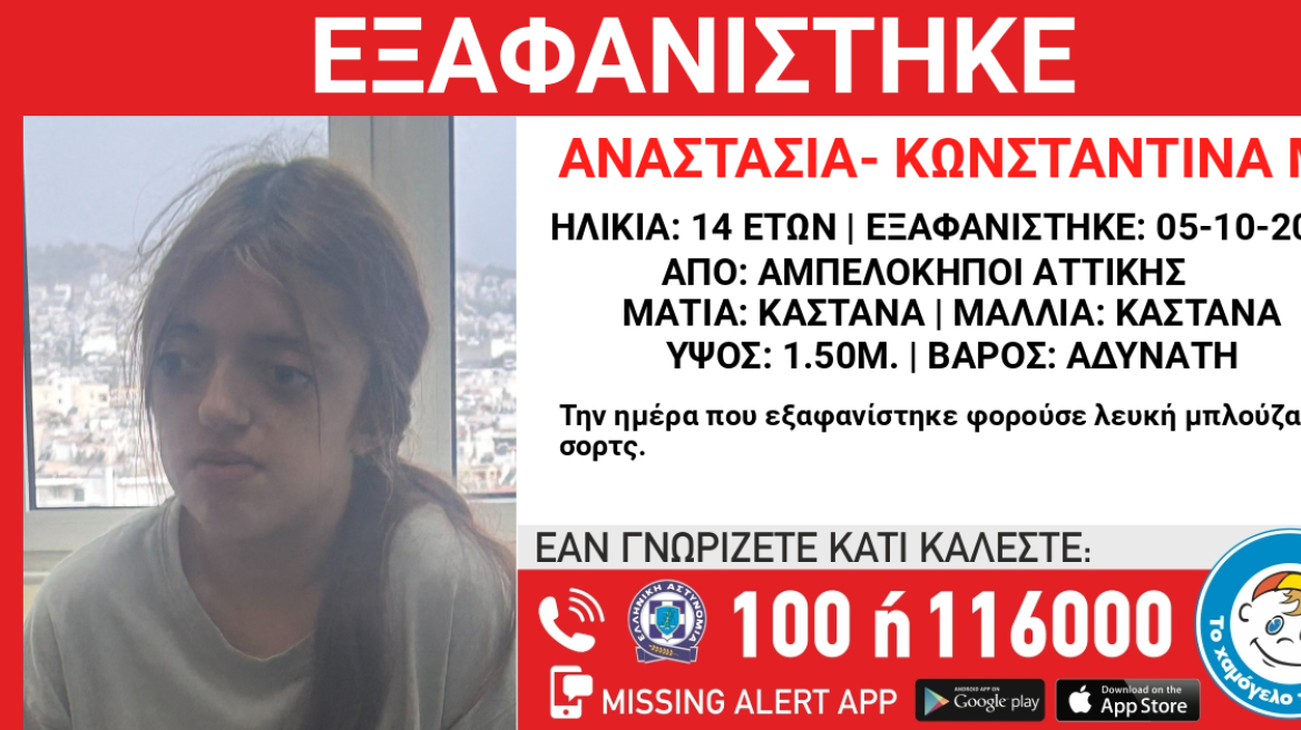 Το «Χαμόγελο του Παιδιού» ενημερώθηκε σήμερα για την Αναστασία – Κωνσταντίνα Μ. και προχώρησε στην δημοσιοποίηση των στοιχείων της κατόπιν εισαγγελικής εντολής, καθώς ενδέχεται να συντρέχουν λόγοι που θέτουν τη ζωή της σε κίνδυνο.