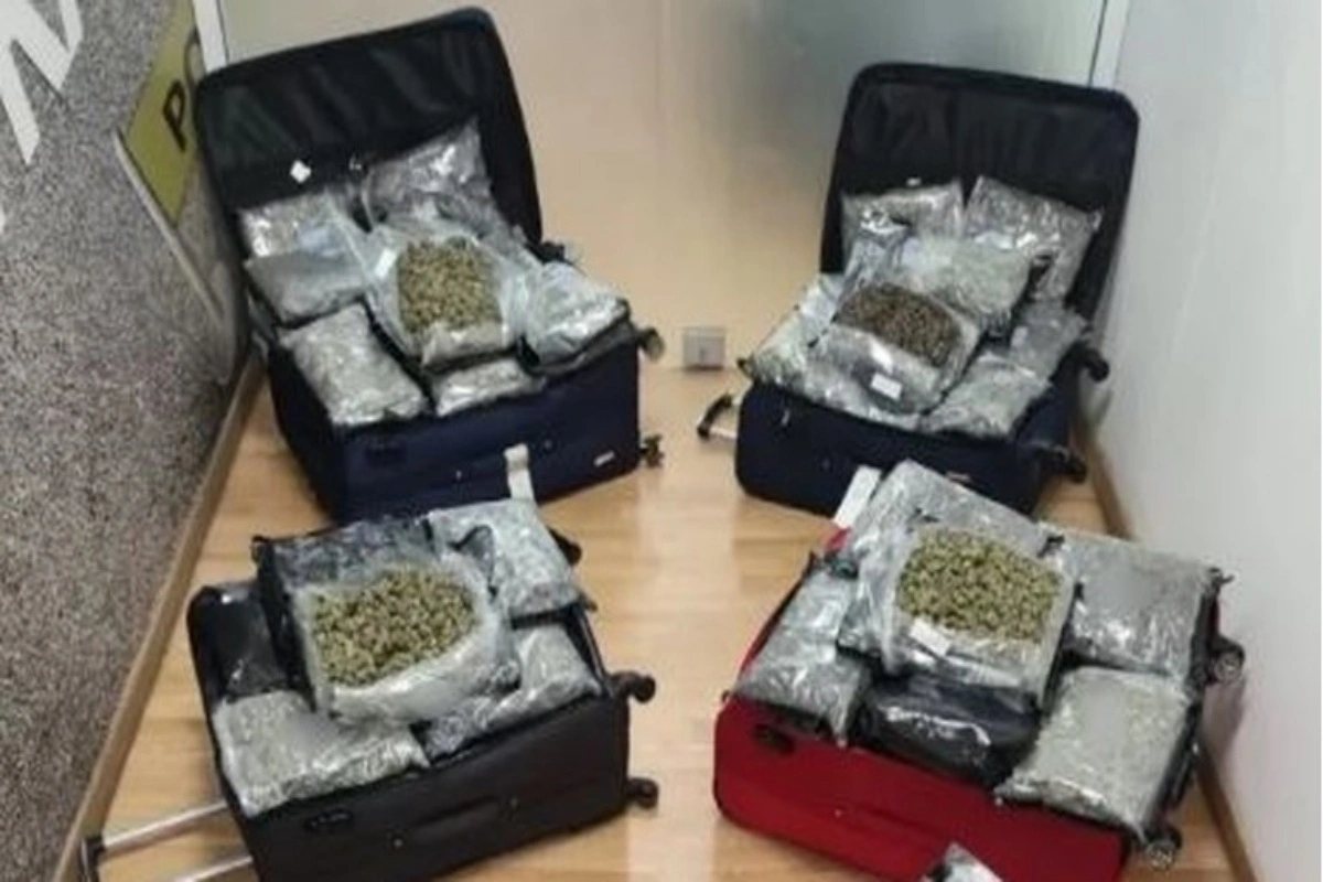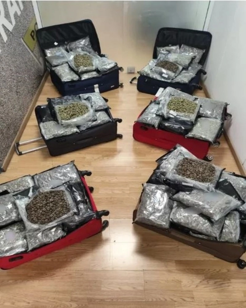 Από τον έλεγχο που πραγματοποιήθηκε στις αποσκευές τους, συνολικά κατελήφθησαν να έχουν αποκρύψει σε νάιλον συσκευασίες εντός των αποσκευών τους, 72 κιλά και 700 γραμμάρια ακατέργαστης κάνναβης υδροπονικής καλλιέργειας (skunk).