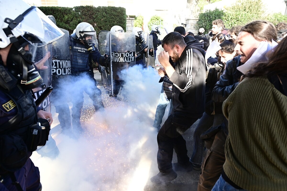 Οι φοιτητές αντιδρούν με την παράκαμψη του άρθρου 16 του Συντάγματος και ίδρυση ιδιωτικών πανεπιστημίων. Πριν λίγο σημειώθηκε ένταση και έπεσαν δακρυγόνα ωστόσο η κατάσταση φάνηκε να εκτονώνεται.