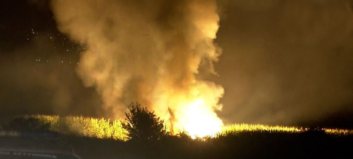 Αυτόπτες μάρτυρες ανέφεραν ότι αρχικά είδαν ένα φλεγόμενο αντικείμενο, που όταν κατέπεσε προκάλεσε μεγάλη πυρκαγιά και πολλαπλές εκρήξεις. Στην περιοχή υπάρχει μεγάλη κινητοποίηση της Πυροσβεστικής και της Αστυνομίας, ενώ έχουν καταφτάσει και ασθενοφόρα.