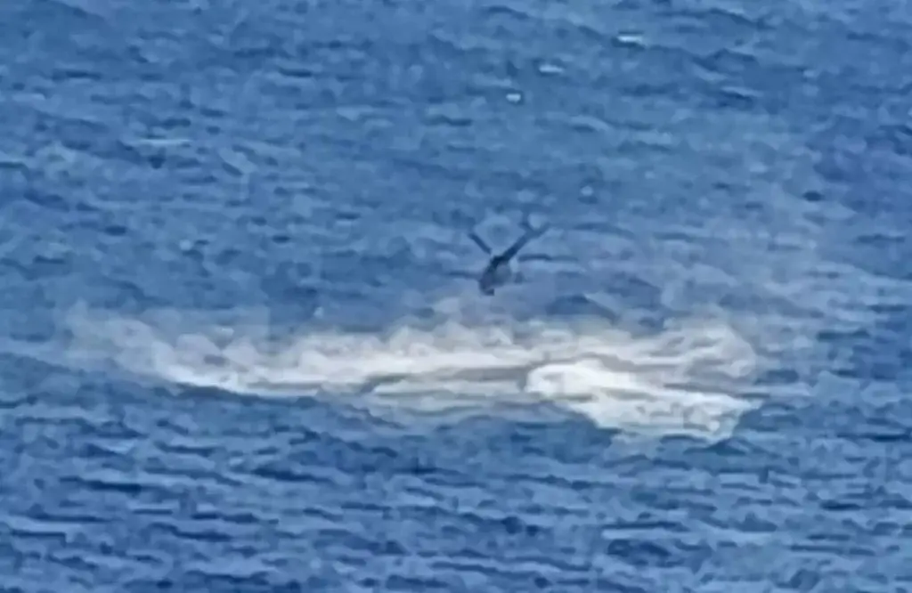 Στην φωτογραφία από το samos24 φαίνεται η στιγμή της πτώσης του ελικοπτέρου στη θάλασσα.