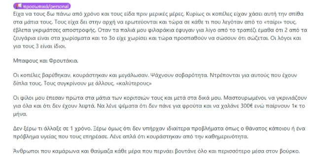 Η πιο σπαρακτική ίσως πτυχή του εθισμού στον τζόγο είναι το πώς ροκανίζει αθόρυβα τις ανθρώπινες σχέσεις. Σε ένα ιδιαίτερα συγκινητικό ποστ, ένας χρήστης περιγράφει πώς τρία αγαπημένα του ζευγάρια οδηγήθηκαν στον χωρισμό. Όχι λόγω απιστίας ή τραγικών περιστάσεων, αλλά εξαιτίας μιας πιο «ύπουλης» καθημερινότητας: «Μπάφους και φρουτάκια».