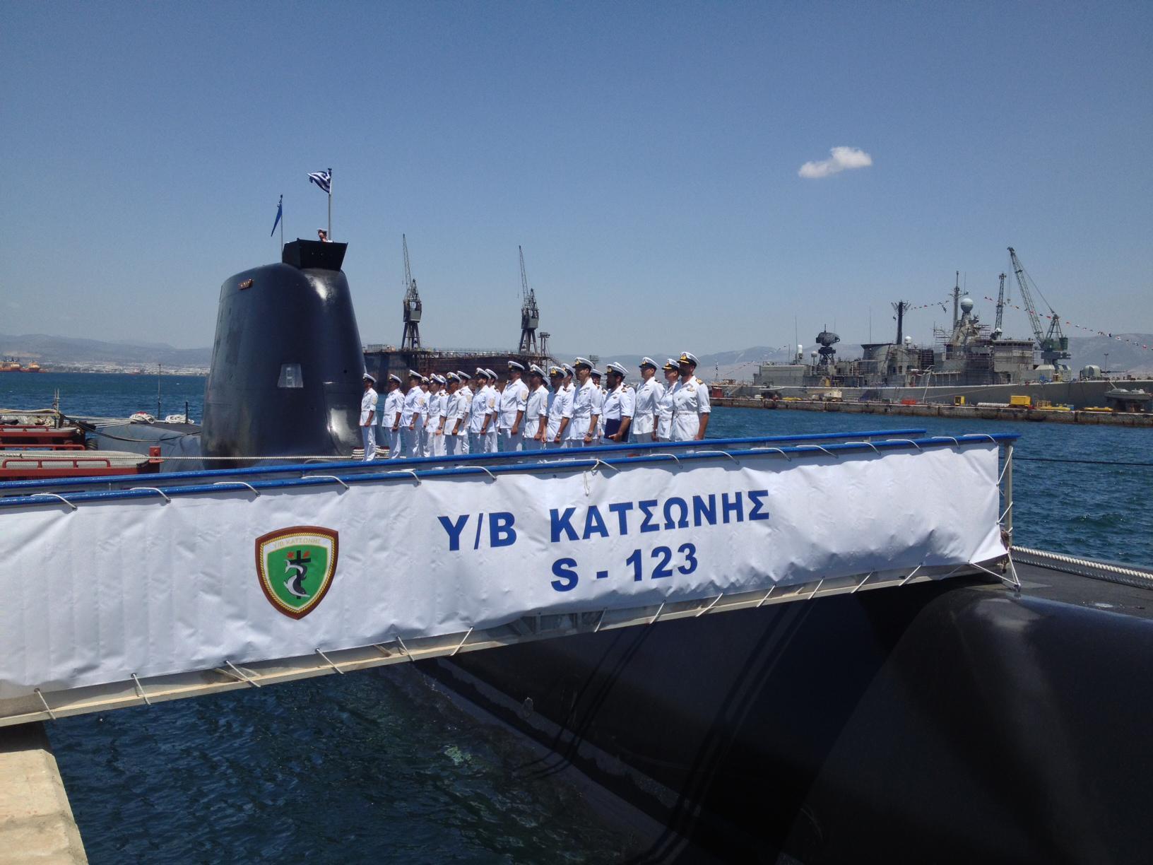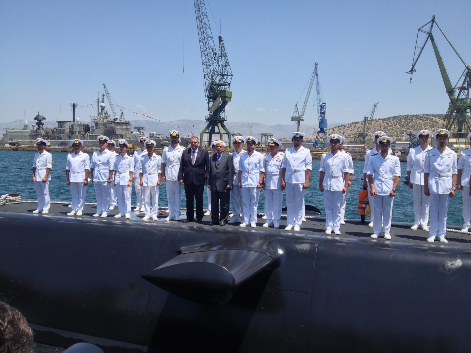 Παρουσία του Προέδρου της Δημοκρατίας έγινε το πρωί της Πέμπτης η τελετή ονοματοδοσίας και η ύψωση της ελληνικής σημαίας στα υποβρύχια “Ματρώζος” και “Κατσώνης”, στα ναυπηγεία Σκαραμαγκά.