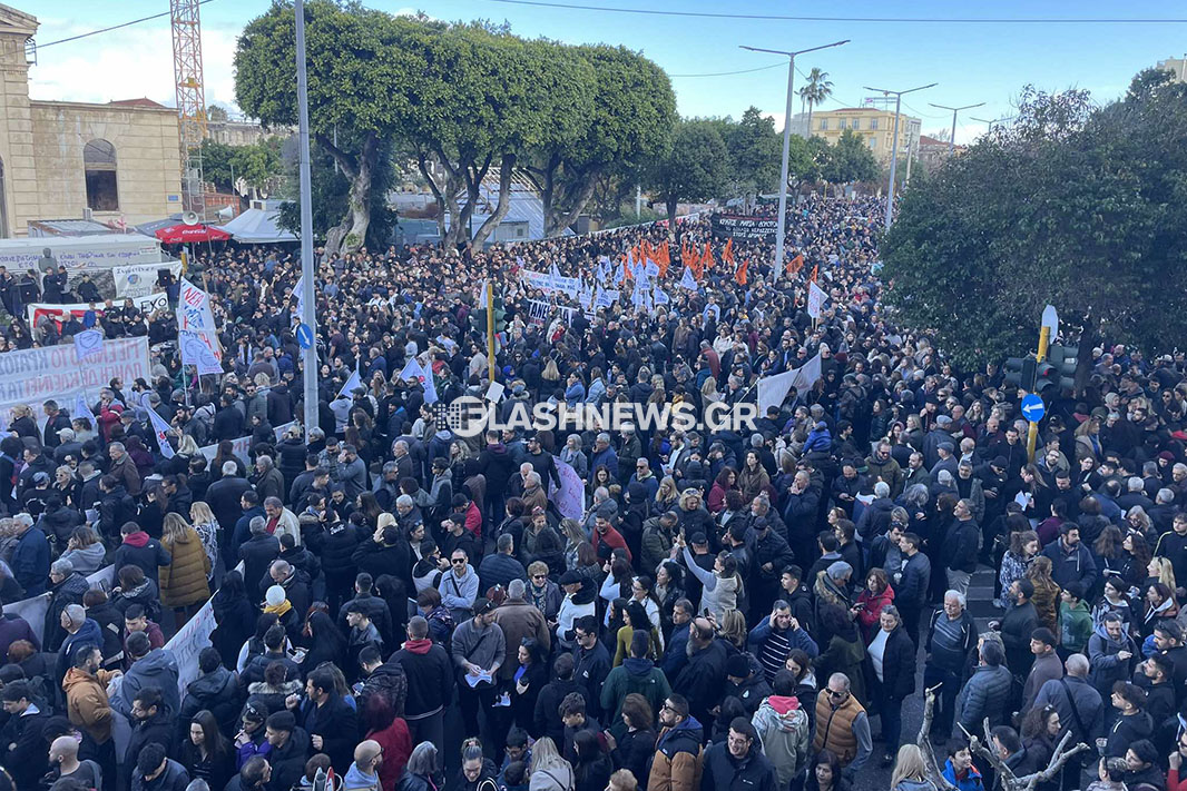 «Βούλιαξαν» τα Χανιά στο μαζικό συλλαλητήριο για τα Τέμπη