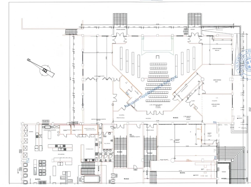 - Ως δευτερεύουσα αίθουσα συνεδριάσεων ο κύριος χώρος υποδοχής του Συνεδριακού Κέντρου, εμβαδού 109,57 τ.μ., όπου θα τοποθετηθούν θέσεις ακροατηρίου με οθόνες παρακολούθησης.