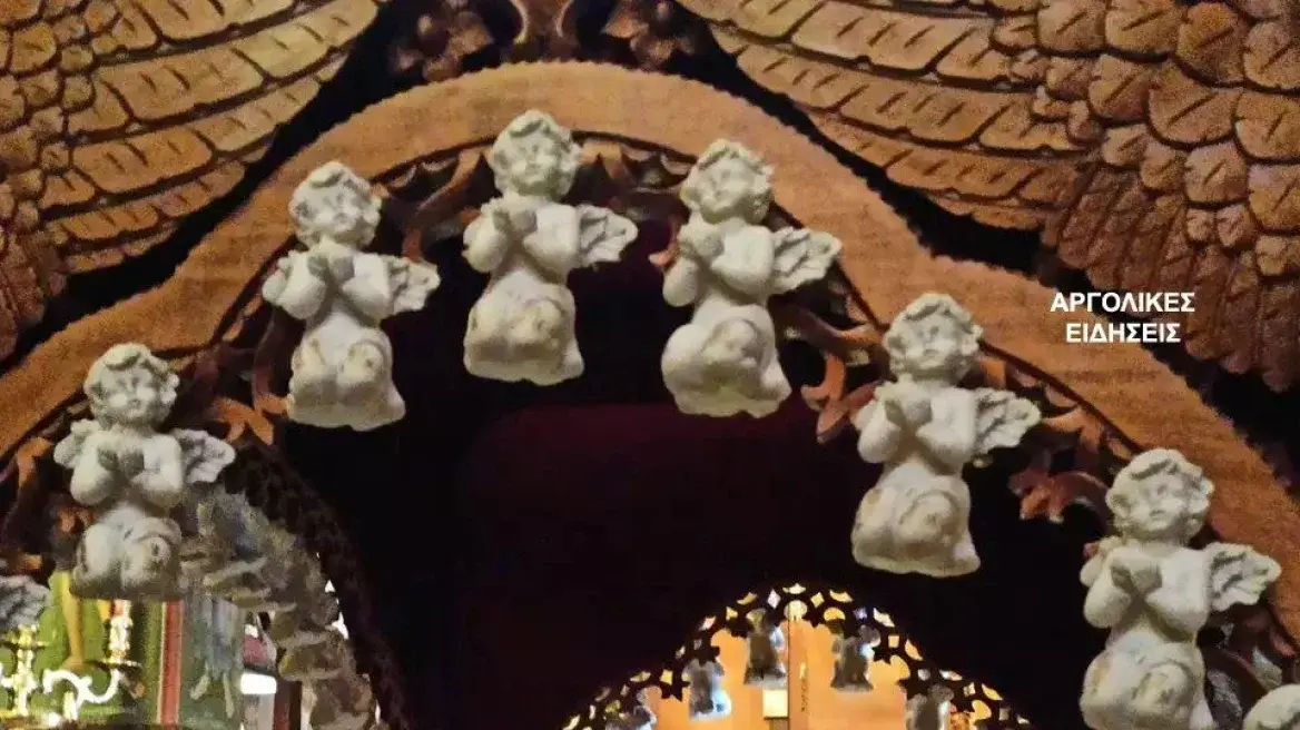 Τον εν λόγω επιτάφιο στόλισαν με λευκά λουλούδια και τον διακόσμησαν με 57 μικρά λευκά αγγελάκια με τα ονόματα των θυμάτων από την τραγωδία στα Τέμπη και τοποθέτησαν έναν μεγάλο άγγελο για τους αγνοούμενους της τραγωδίας.