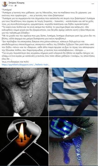 Τέμπη: Η ανάρτηση του Σπύρου Κίκερη