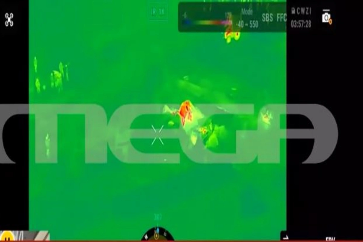 Σε ένα δεύτερο πλάνο καταγράφεται η στιγμή που το drone με θερμική κάμερα αποτυπώνει πιθανές εστίας πυρκαγιάς στο σημείο.