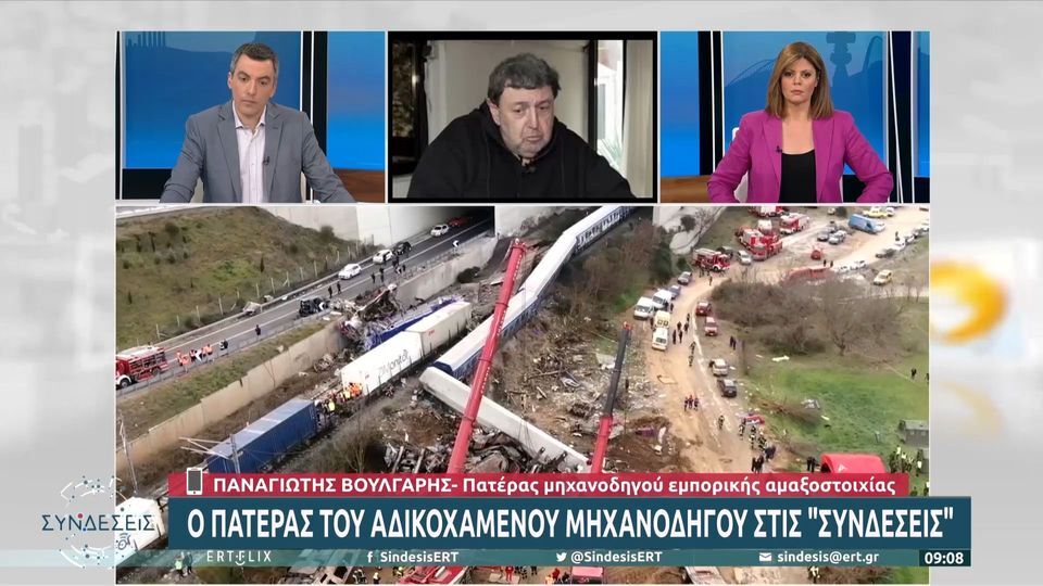 Ο πατέρας του μηχανοδηγού της εμπορικής αμαξοστοιχίας που συγκρούστηκε με το Intercity 62 στα Τέμπη, μίλησε στην εκπομπή «Συνδέσεις» της ΕΡΤ. Ο Παναγιώτης Βούλγαρης, τόνισε καταρχάς ότι «δυστυχώς αιωρείται ακόμα μία λανθασμένη πληροφορία ότι τον γιο μου όλοι τον είχαν σαν επιβάτη στην επιβατική αμαξοστοιχία. Πώς μπορεί να γίνεται αυτό να είναι συγχρόνως επιβάτης στην αμαξοστοιχία και να είναι και οδηγός στην εμπορική; Αυτό, ήταν λανθασμένη πληροφορία». Ο ίδιος είπε ότι δεν καταδικάζει κανέναν, «τα έχει αναλάβει η δικαιοσύνη αυτά».