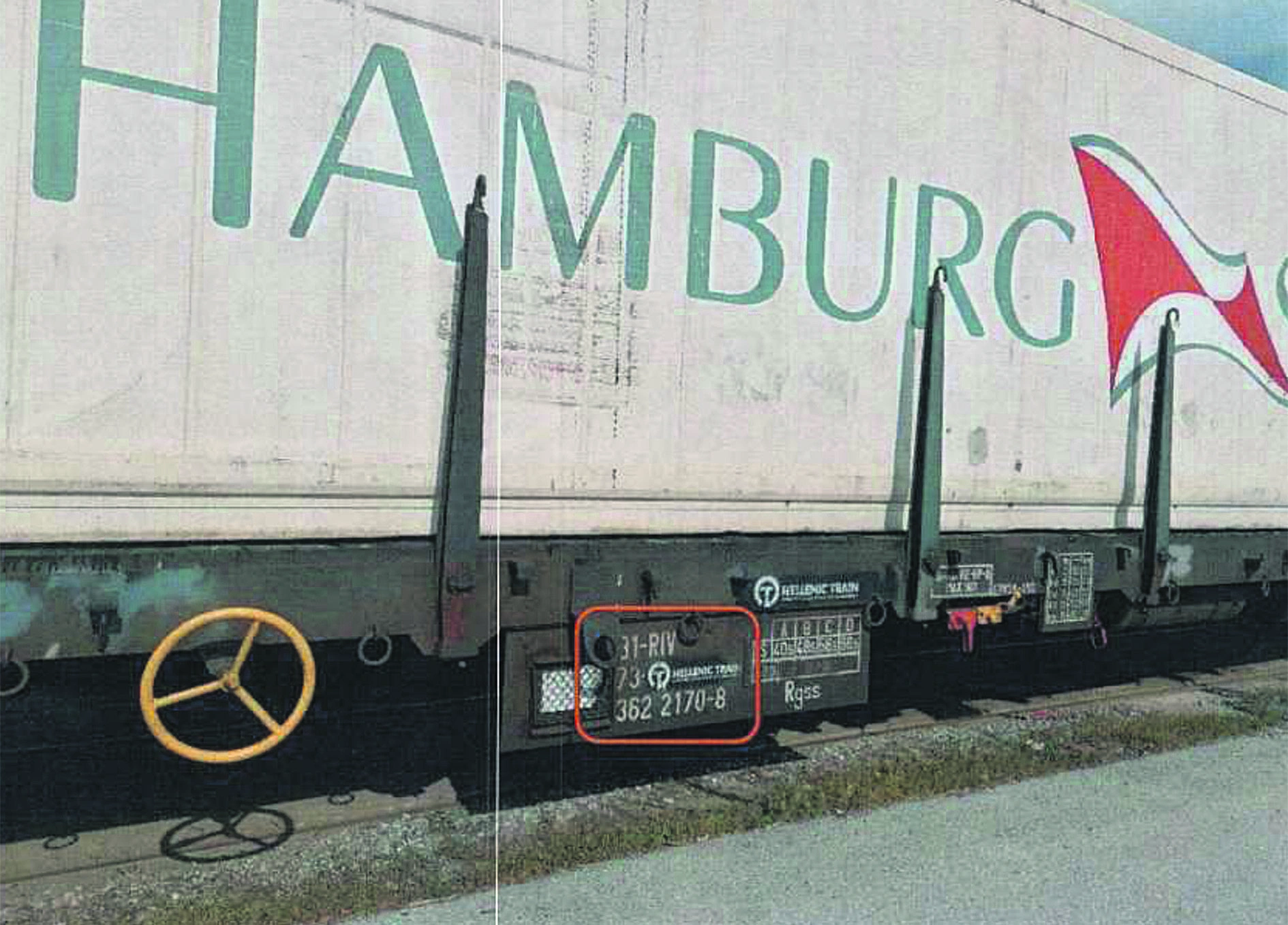 2. Τα διακριτικά των container και η σειρά με την οποία είναι αυτά σχηματισμένα συμπίπτουν τόσο στα 2 βίντεο που αναλύθηκαν παραπάνω, όσο και με αυτά του συρμού 63503 της εμπορικής αμαξοστοιχίας που διαπιστώθηκαν από την Αστυνομία κατά το άνοιγμά τους στον εμπορικό σταθμό Θεσσαλονίκης