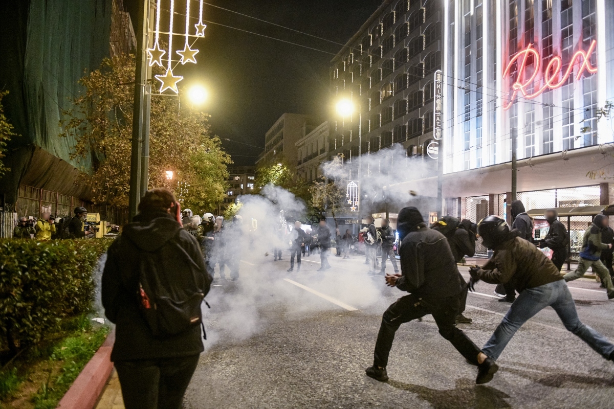 Νωρίτερα επικράτησε ένταση στο κέντρο της Αθήνας, όπου πραγματοποιείται συγκέντρωση διαμαρτυρίας για τον θάνατο του 16χρονου Ρομά από πυροβολισμό αστυνομικού. Σύμφωνα με την ΕΛ.ΑΣ, ομάδα ατόμων έριξε βόμβες μολότοφ εναντίον αστυνομικών δυνάμεων. Έως αυτή την ώρα δεν έχουν γίνει προσαγωγές.