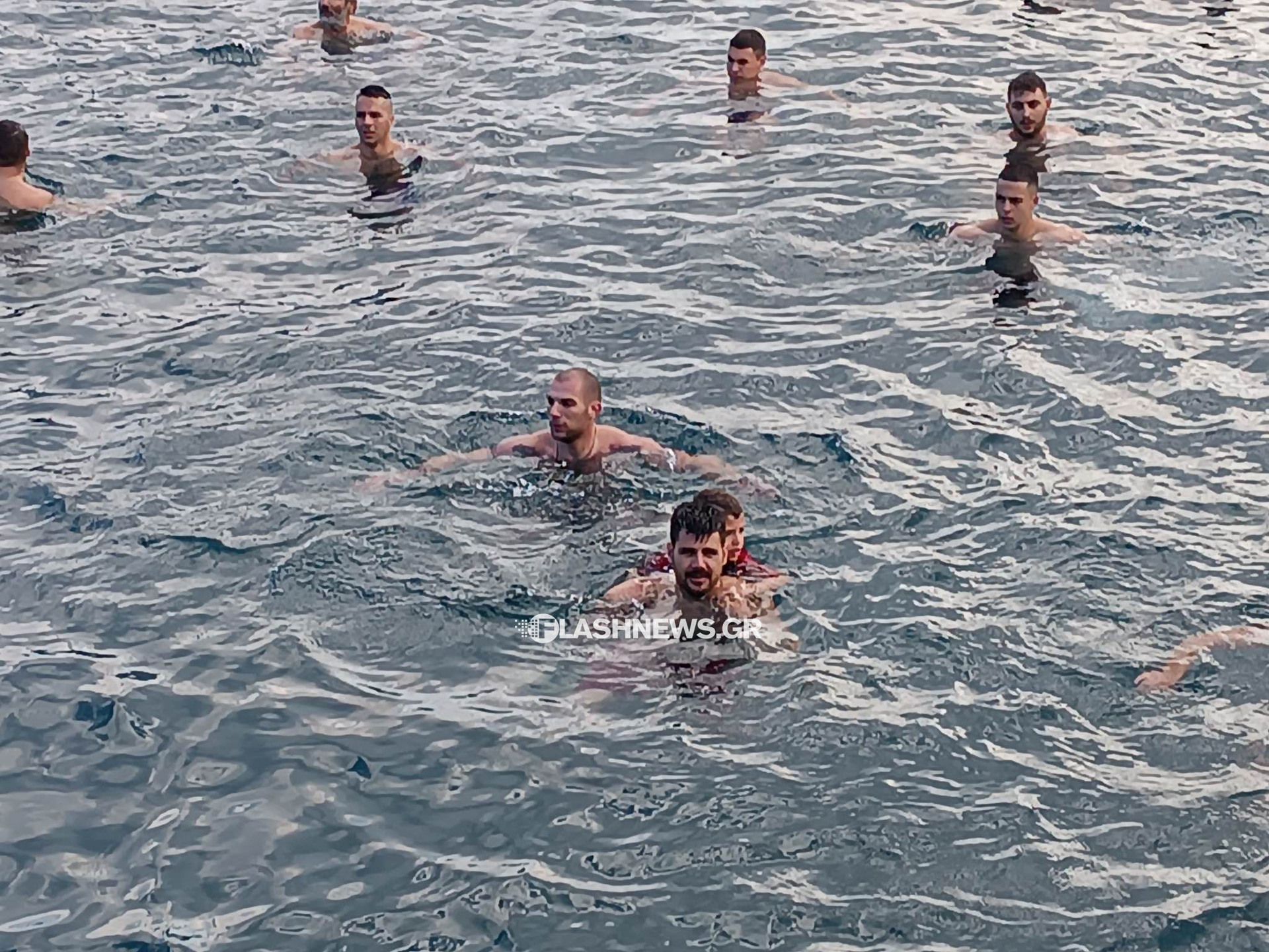Δείτε τη στιγμή που βούτηξαν πατέρας και γιος για να πιάσουν τον Σταυρό στην τελετή αγιασμού των υδάτων στο λιμάνι της Σούδας.