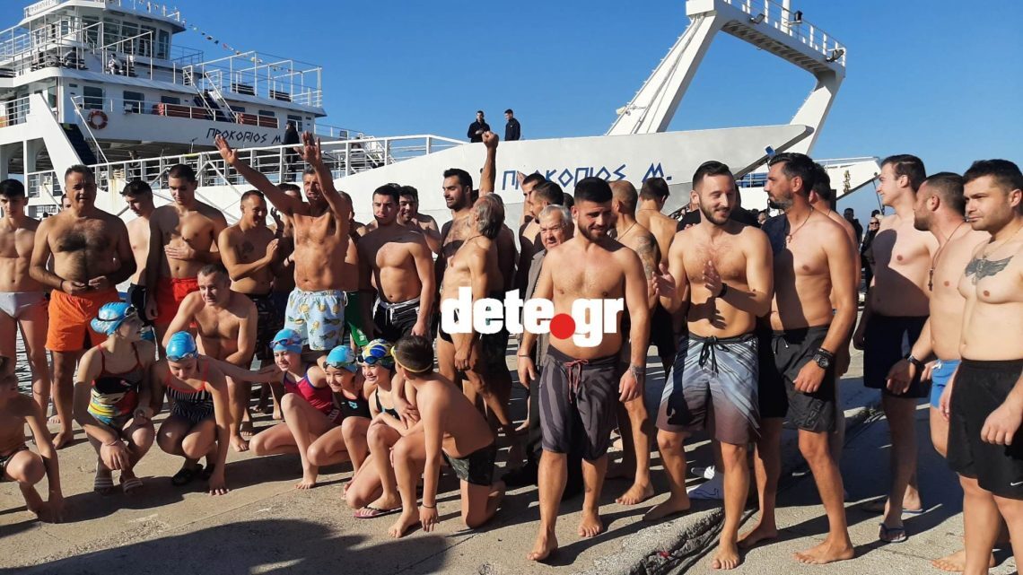 Μάλιστα οι κολυμβητές μέσα στην θάλασσα, αλλά και όταν βγήκαν από το νερό άνοιξαν μια τεράστια ελληνική σημαία και τραγούδησαν τον Εθνικό Ύμνο, σκορπώντας ρίγη συγκίνησης στον κόσμο. Τον Σταυρό έπιασε ο 15χρονος Χρήστος Βουκελάτος.