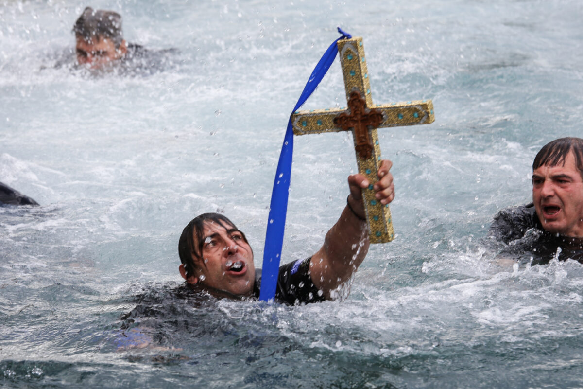 Παρά το τσουχτερό κρύο, αρκετοί τολμηροί κολυμβητές βούτηξαν στα νερά του λιμανιού προσπαθώντας να πιάσουν τον σταυρό, συμμετέχοντας στο παραδοσιακό έθιμο της ημέρας.