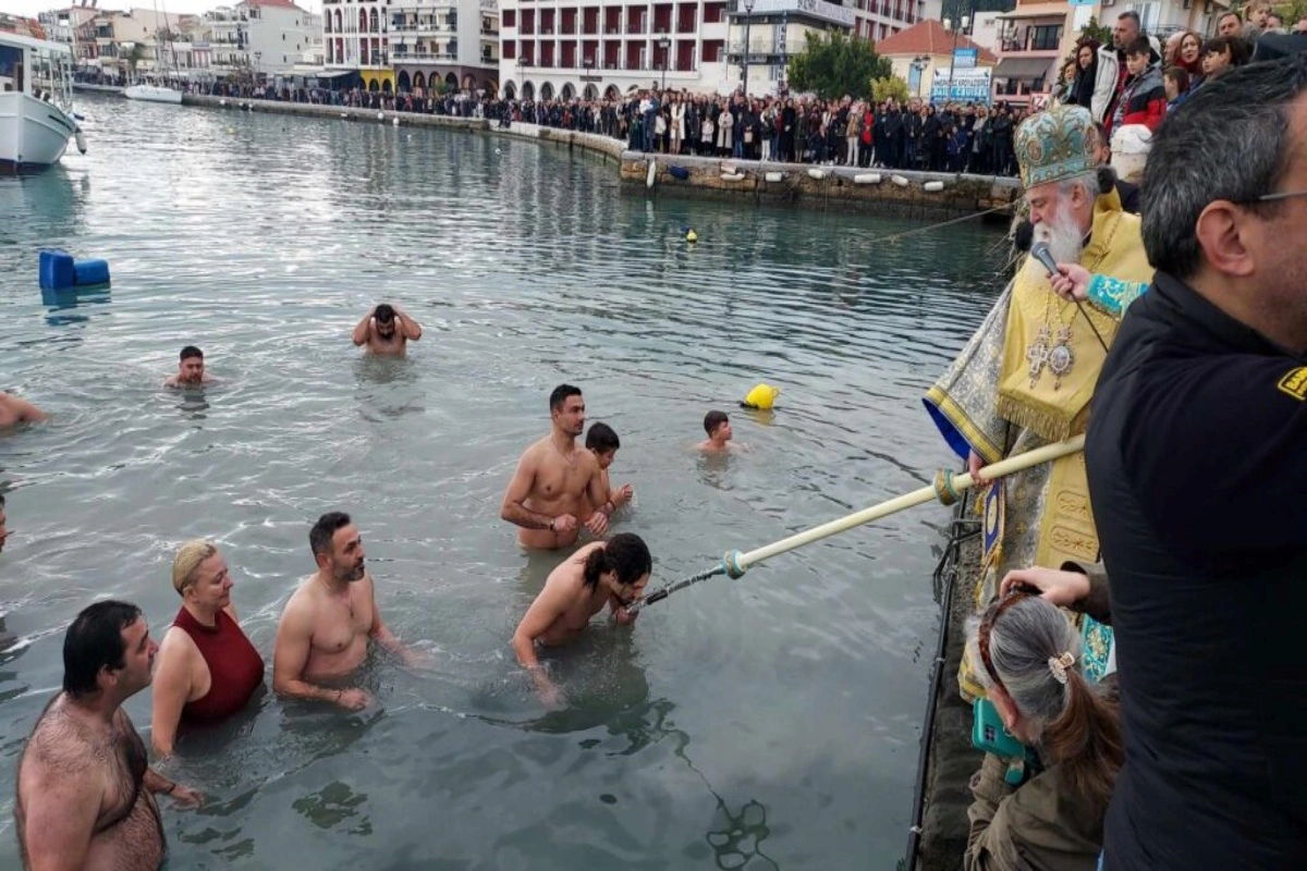 Ο ιερέας έριξε τον σταυρό στα νερά, με τολμηρούς νεαρούς να βουτούν αψηφώντας το παγωμένο ρεύμα για να τον ανασύρουν. Η στιγμή ήταν γεμάτη συγκίνηση και δέος, με τους παρευρισκόμενους να χειροκροτούν τους κολυμβητές, οι οποίοι έλαβαν την ευλογία της Εκκλησίας για την πράξη τους.