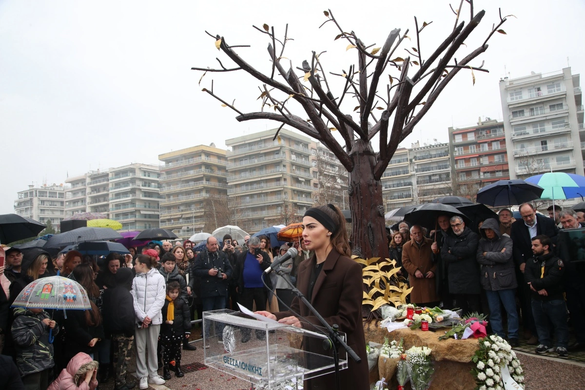 «Το δέντρο της μνήμης που ριζώνει από σήμερα στην καρδιά της Θεσσαλονίκης με τα πεσμένα από τα κλαδιά πουλιά, θα υπενθυμίζει στο διηνεκές το αναιτιολόγητο, εξοργιστικό χαμό των ανθρώπων αυτών αλλά και την αδήριτη ανάγκη να ληφθούν άμεσα όλα τα απαραίτητα μέτρα ώστε να προληφθούν στο μέλλον ανάλογες τραγωδίες», είπε ο δήμαρχος κ. Αγγελούδης, κατά την τελετή των αποκαλυπτηρίων.