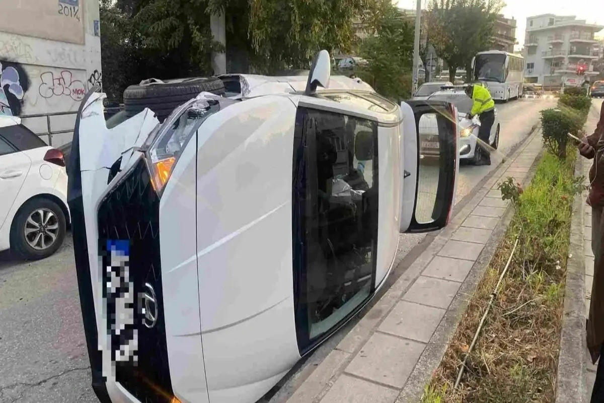 Το τροχαίο έγινε κοντά στην οδό Λαγκαδά όταν ο οδηγός έχασε τον έλεγχο, χτύπησε παρκαρισμένο αυτοκίνητο και στη συνέχεια το όχημά του ανετράπη.