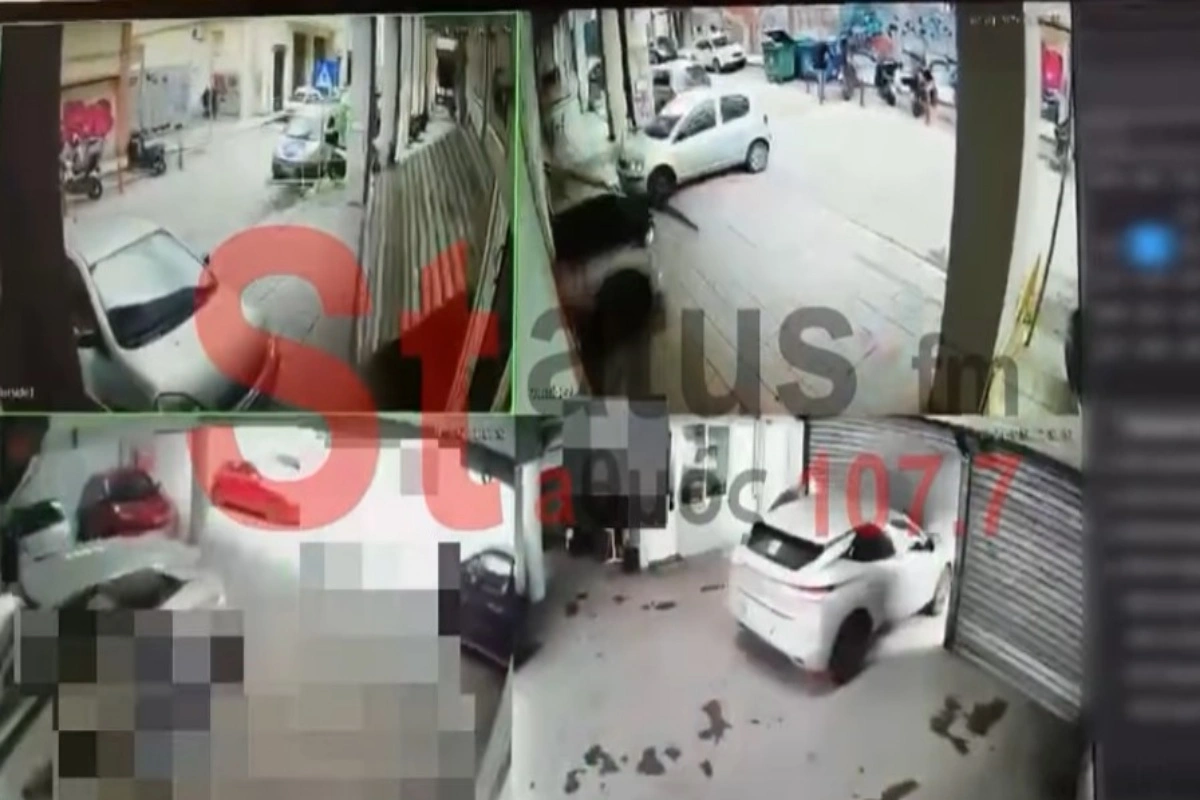 Όπως φαίνεται και στο βίντεο που δημοσίευσε ο Status FM, ένα αυτοκίνητο κατέληξε από το πάρκινγκ έξω στον δρόμο.