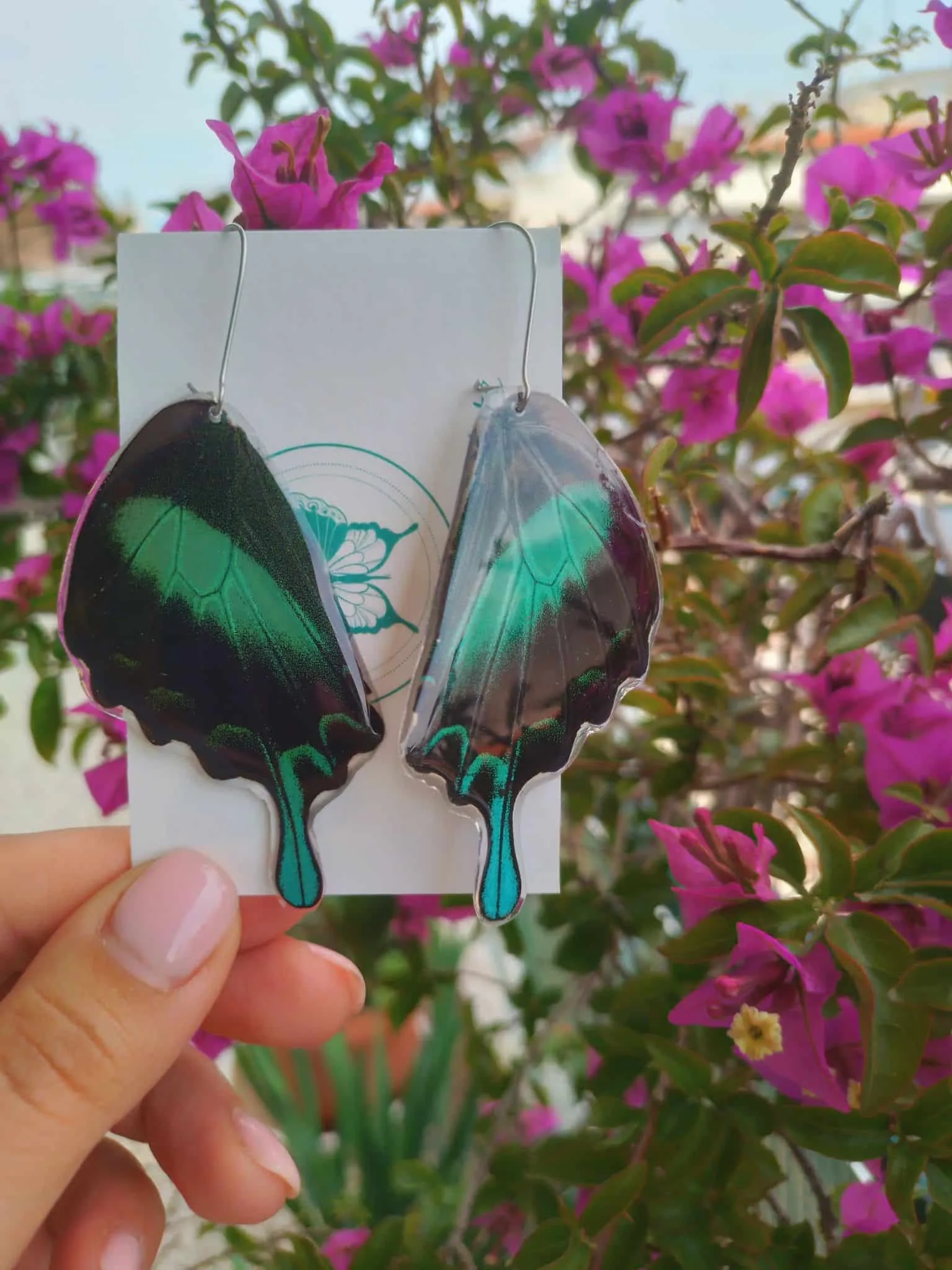 Η Ευαγγελία Γεωργακοπούλου επέλεξε έναν μοναδικό τρόπο για να «στολίζει» τα χειροποίητα κοσμήματά της, κάνοντας ορατή την ομορφιά σπάνιων πεταλούδων απ’ όλο τον κόσμο.