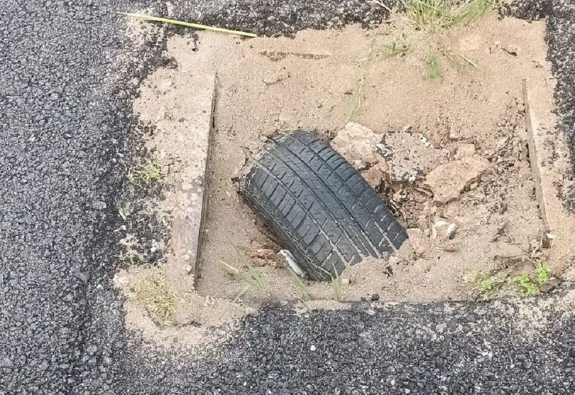 Όπως δημοσιεύει το ditika.gr, στον ασφαλτοστρωμένο δρόμο διακρίνεται μία τρύπα και μέσα σε αυτήν βρίσκεται…. ξεχασμένη μία ρόδα Ι.Χ.