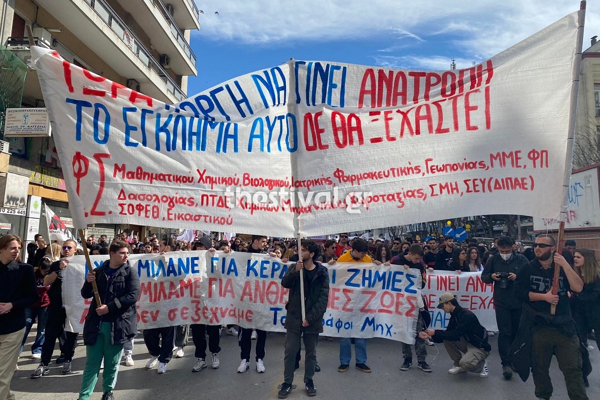 Να σημειωθεί πως χιλιάδες κόσμου κατέκλυσαν τον άξονα της Αριστοτέλους από το άγαλμα Βενιζέλου έως και κάτω το πέταλο. Άπαντες κατέβηκαν στους δρόμους για να ζητήσουν να αποδοθούν ευθύνες για το τραγικό δυστύχημα στα Τέμπη που στοίχισε τη ζωή σε δεκάδες ανθρώπους.