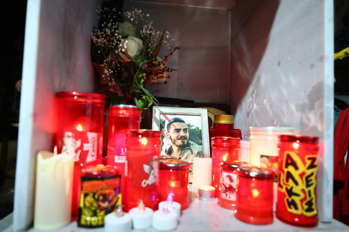 Τα δύο τελευταία κεριά στο σημείο της δολοφονίας άφησαν συμβολικά ο πατέρας του, Αριστείδης Καμπανός και η μητέρα του, Μελίνα Κακουλίδου.