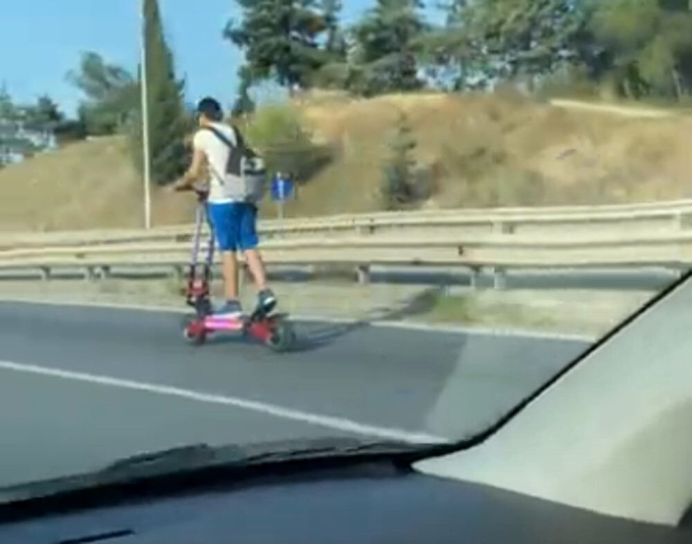 Παρ’ όλα αυτά, χωρίς δεύτερη σκέψη προσπερνούσε από τη μεσαία και τη δεξιά λωρίδα κυκλοφορίας ό,τι αυτοκίνητο ή φορτηγό έβρισκε μπροστά του! Κάθε φορά που το πατίνι έπεφτε σε λακκούβα, ο οδηγός «χοροπηδούσε» και τραντάζονταν ολόκληρος. Η απερισκεψία και η ανοησία του θα μπορούσαν να είχαν μετατραπεί σε τραγωδία. Διότι, αν τελικά έχανε την ισορροπία του και σέρνονταν στο οδόστρωμα για μέτρα, πιθανότατα θα έχανε τη ζωή του, αλλά θα μπορούσε να προκαλέσει και σοβαρό τροχαίο δυστύχημα, καθώς τα οχήματα στο συγκεκριμένο δρόμο κινούνται με μεγάλη ταχύτητα.