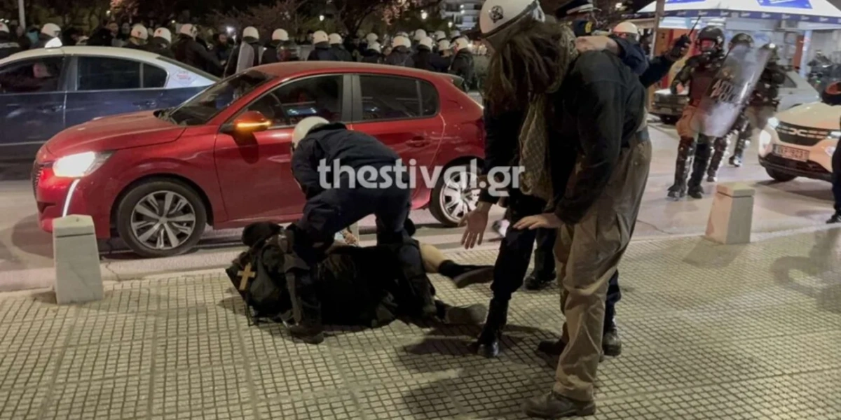 Ωστόσο, δεν αποφεύχθηκαν τα επεισόδια, καθώς ορισμένοι από τους διαδηλωτές προσπάθησαν να σπάσουν τον κλοιό της αστυνομίας, την ώρα που θεατές έμπαιναν στο θέατρο. Η αστυνομία προχώρησε σε τέσσερις προσαγωγές. Η αντίδρασή τους σχετίζεται με την αφίσα της παράστασης, στην οποία ο Ζαραλίκος εμφανίζεται με ακάνθινο στεφάνι και μανδύα, κάτι που, όπως υποστηρίζουν, «προσβάλλει τα θεία».