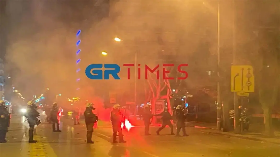 Το κλίμα είναι, ειδικότερα, τεταμένο επί της Εγνατίας στο ύψος της Αριστοτέλους, όπου αναρχικοί σπάζουν πεζοδρόμια και πετούν πέτρες και κομμάτια τσιμέντου εναντίον των αστυνομικών.
