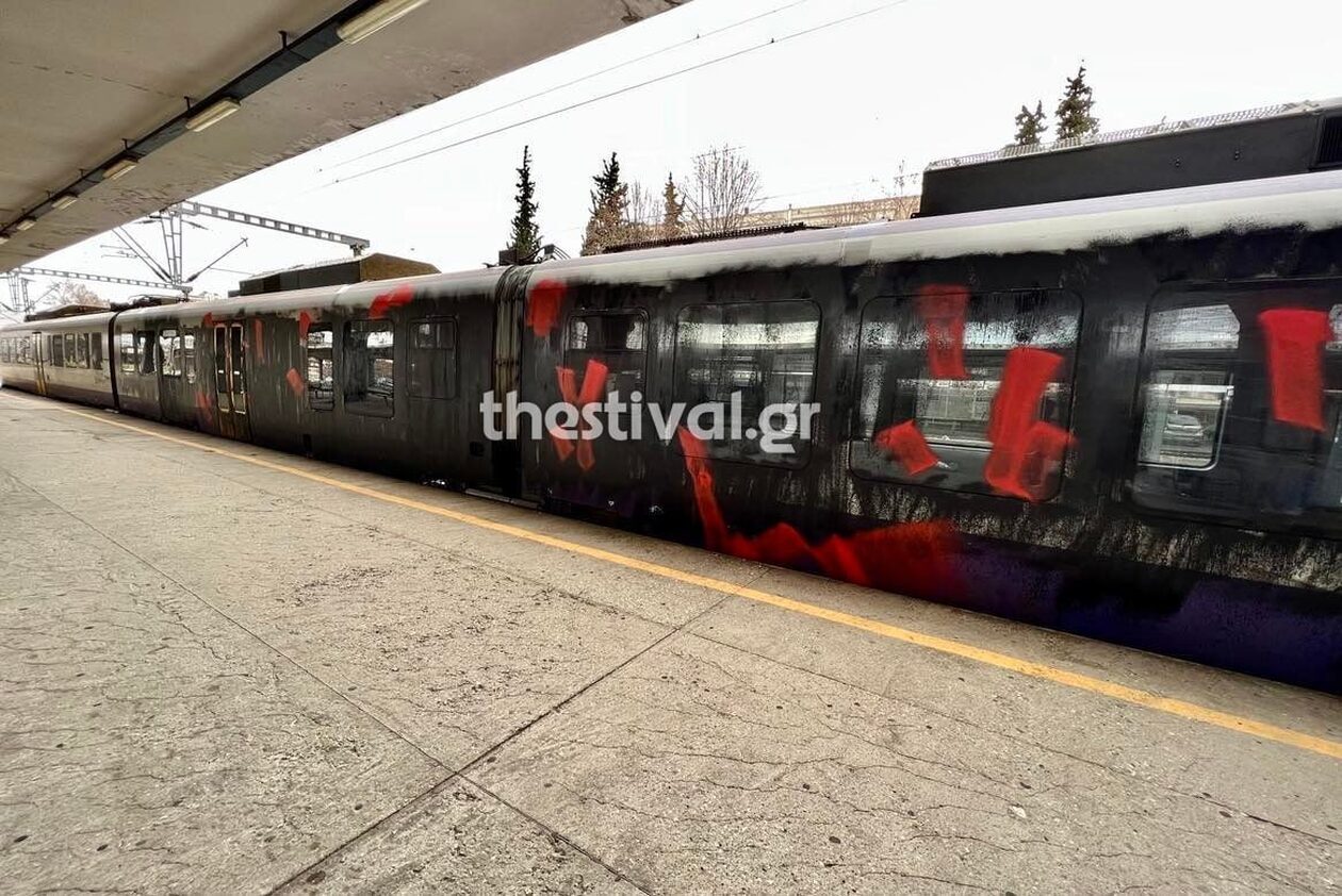 Όπως βλέπετε μέσα από τη συμβολική ακτιβιστική κίνηση στις φωτογραφίες της τοπικής ιστοσελίδας thestival.gr, τα εν λόγω άτομα έβαψαν με μαύρη και κόκκινη μπογιά τα βαγόνια του τρένου από την πλευρά της αποβάθρας.