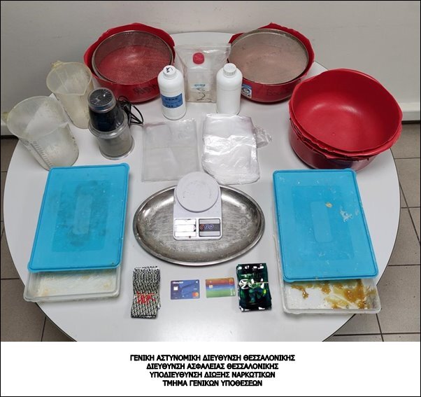 Αστυνομικοί του Τμήματος Γενικών Υποθέσεων της Υποδιεύθυνσης Δίωξης Ναρκωτικών Θεσσαλονίκης προχώρησαν στη σύλληψη των πέντε ανδρών (ηλικίας 29, 35, 58, 39 ετών ημεδαποί -οι δύο πρώτοι είχαν συστήσει ως συνδιευθύνοντες την οργάνωση- και 28 ετών αλλοδαπός) και την κατάσχεση περισσότερων των 43 κιλών και 6 λίτρων συνθετικής κάνναβης (νέου τύπου NPS), που εντόπισαν σε αυτοσχέδιο εργαστήριο παραγωγής συνθετικών ναρκωτικών. Παράλληλα, εντοπίστηκε και βοηθητικός χώρος στην περιοχή της Τριανδρίας, όπου αποθηκεύονταν και φυλάσσονταν οι πρώτες ύλες για την παραγωγή.