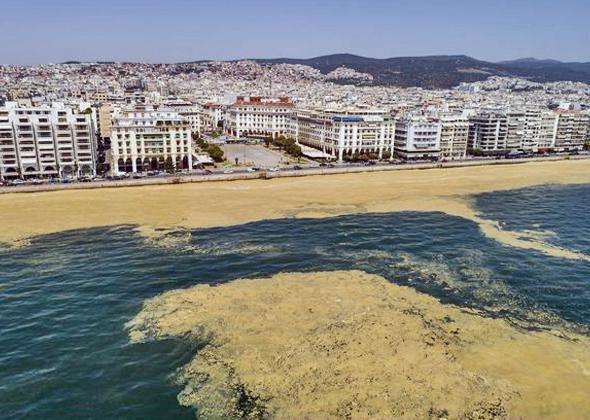Εάν περάσει κάποιος από τον Θερμαϊκό Κόλπο στη Θεσσαλονίκη θα δει πως είναι ιδιαίτερα εμφανές στις γωνίες κοντά στο κράσπεδο, όπου συγκεντρώνονται τα περισσότερα λύματα, ενώ η έκτασή του αναμένεται να αυξηθεί τις επόμενες ημέρες.
