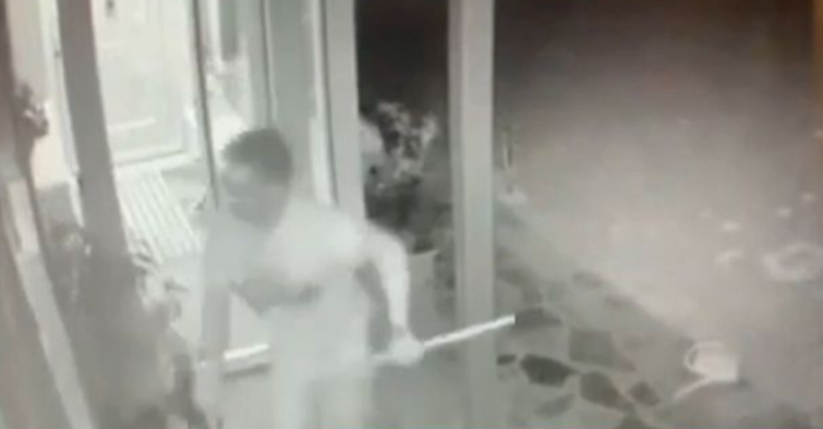 Όπως φαίνεται στο βίντεο από κάμερα ασφαλείας που έφερε στη δημοσιότητα η ΕΡΤ, ο ιδιοκτήτης της μονοκατοικίας πήρε μια σκούπα και άρχισε με αυτή να χτυπάει το παράθυρο και την πόρτα του σπιτιού για να προκαλέσει θόρυβο και αναστάτωση.